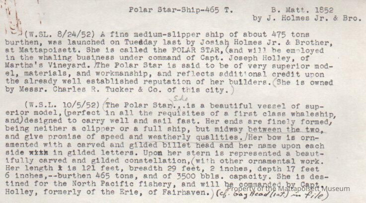 Whalemen's Shipping List articles about Ship "Polar Star". Description and history.