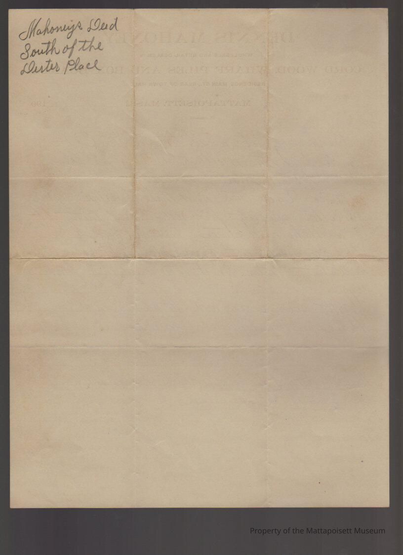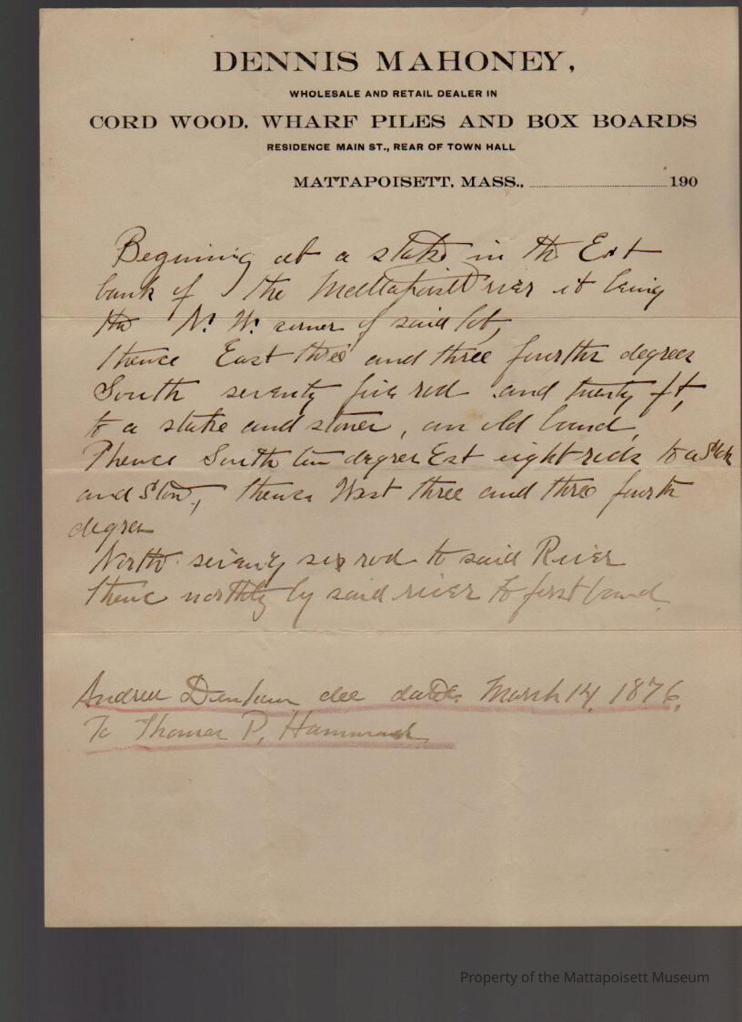 Andrew Denham to Thomas P. Hammond, description of Mahoney's deed, south of Dexter Place.Collection