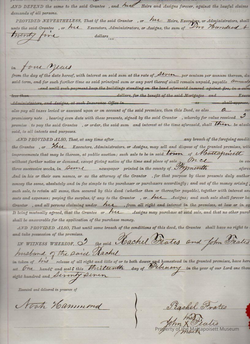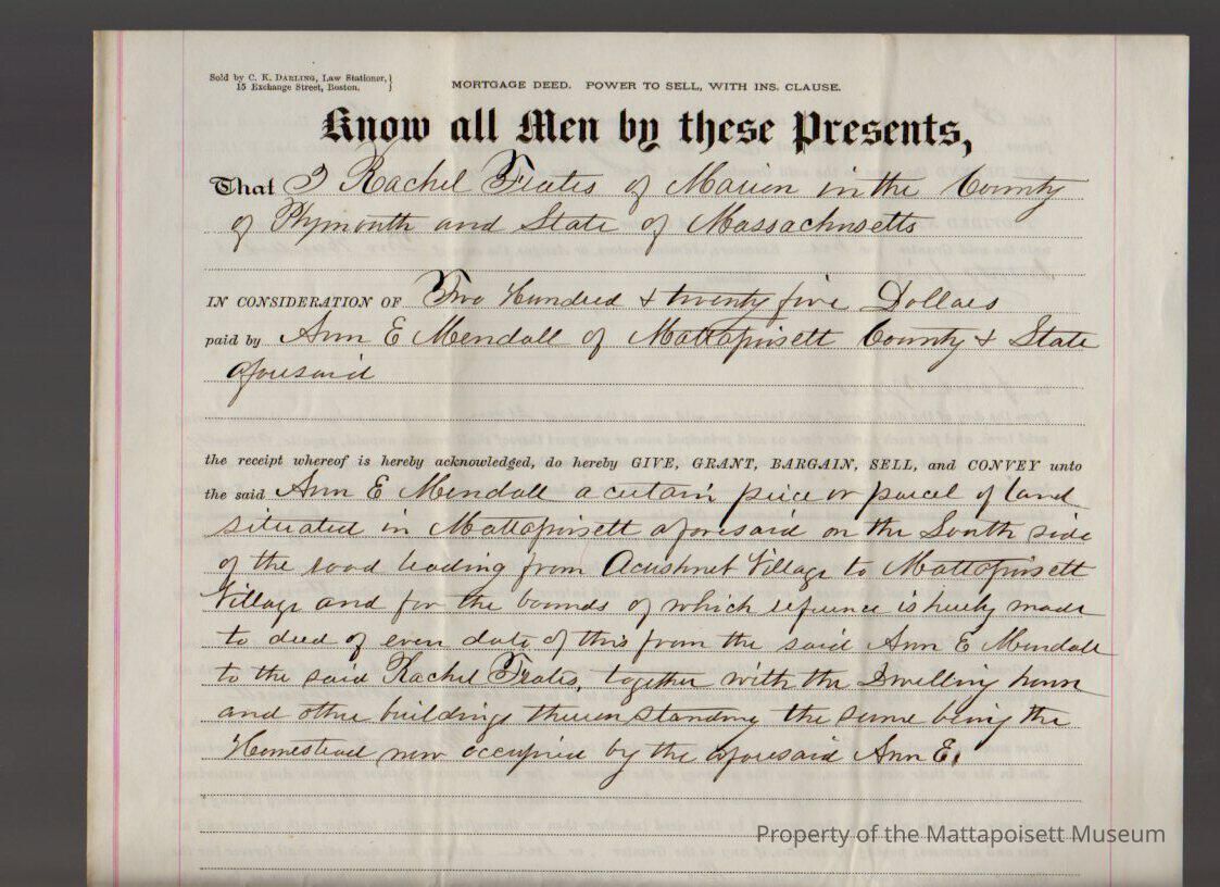 Rachael & John Frates of Marion to Ann E. Mendell, south of road from Acushnet to Mattapoisett for $225.Collection