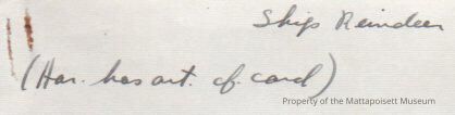 Mostly blank page started for Ship "Reindeer". Harvard has an article, refer to card.Collection