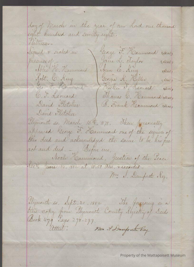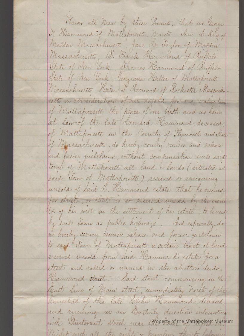 Heirs of Leonard Hammond to Town of Mattapoisett, land for Hammond Street. Copy.Collection