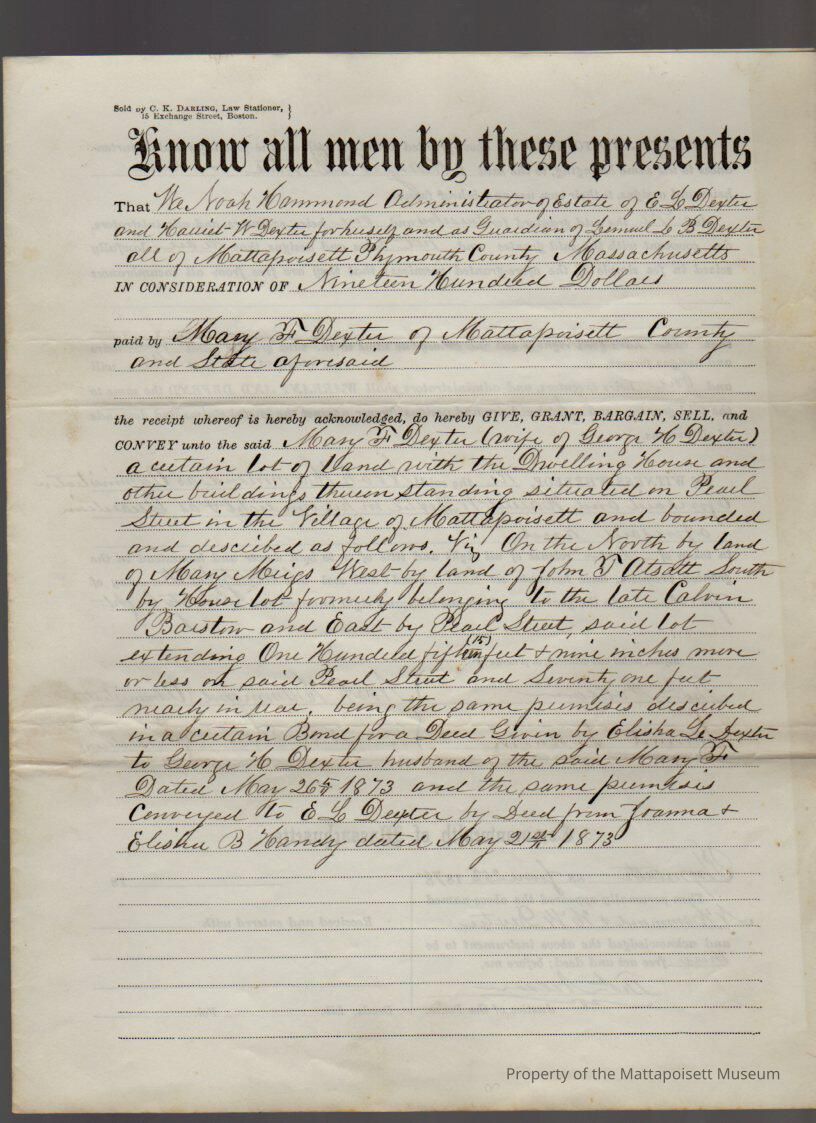 F. & George H. Dexter, land, dwelling house & buildings on Pearl Street.Collection