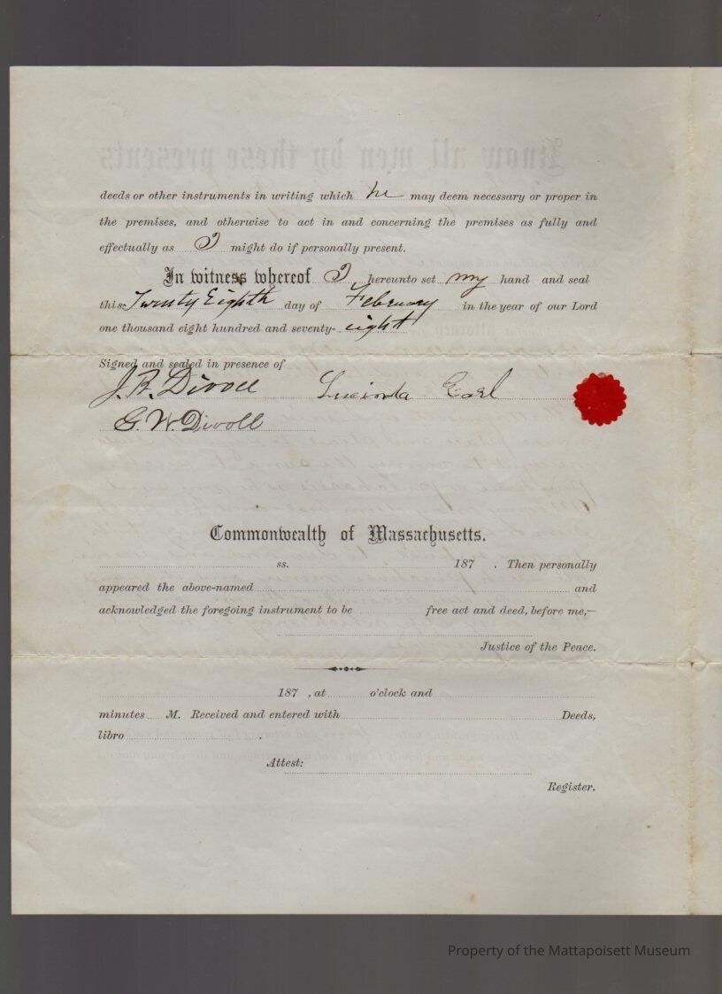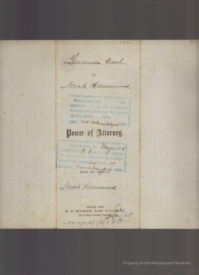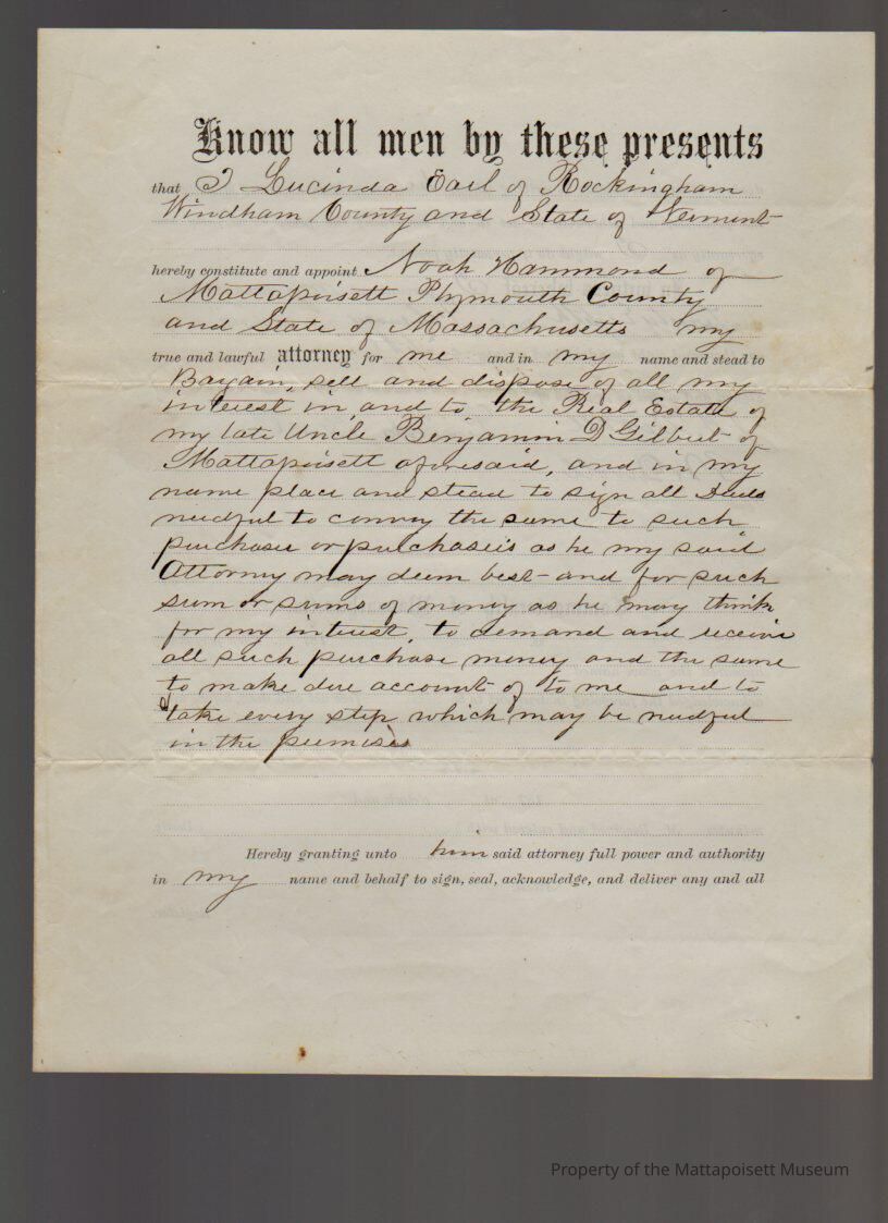 Lucinda Earl of Vermont, Power of Attorney to Noah Hammond for the real estate of Benjamin D. Gilbert.Collection