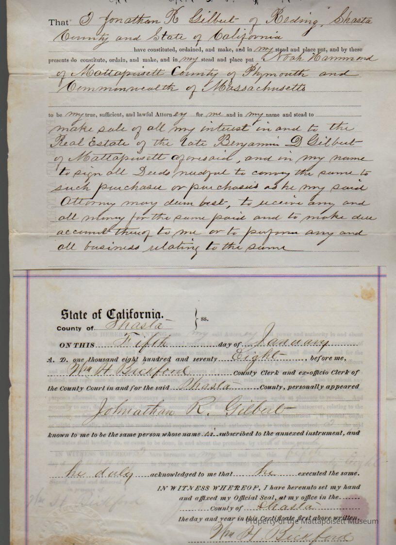 Jonathan R. Gilbert of California, Power of Attorney to Noah Hammond for the real estate of Benjamin D. Gilbert.Collection