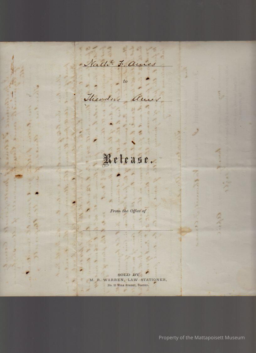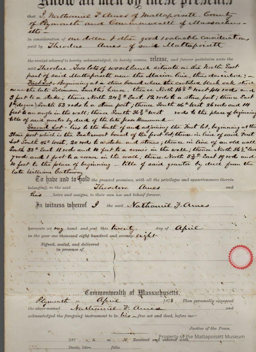 Nathaniel F. Ames to Theodore Ames, two lots of woodland for $1 and other valuable considerations.Collection