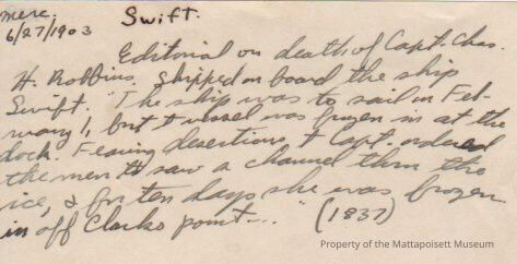 Mercury article about Ship "Swift"; editorial on death of Capt. Charles H. Robbins.Collection