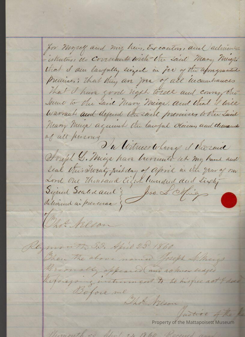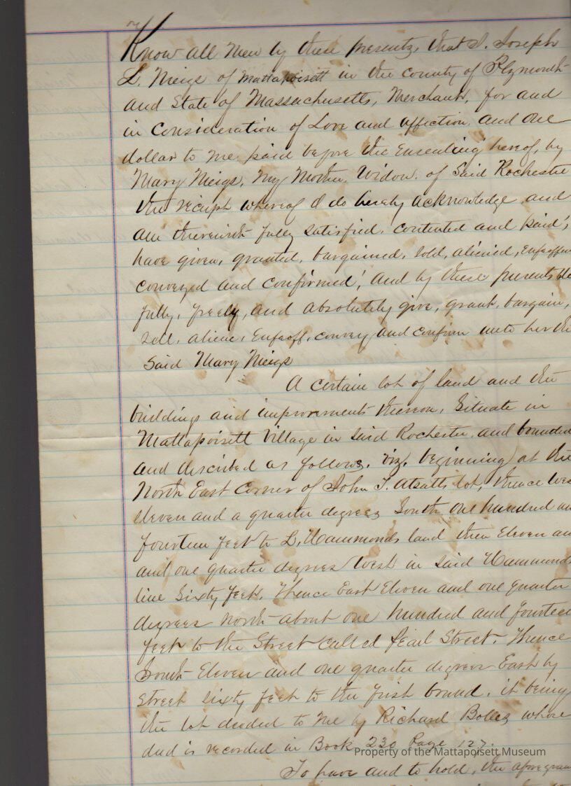 Joseph L. Meigs to Mary Meigs, mother & widow, land for love and affection and $1.Collection