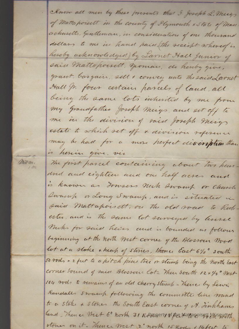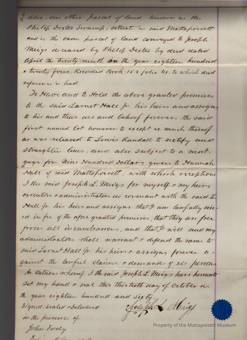 Joseph L. Meigs to Larnet Hall Jr. 4 parcels of land from grandfather's estate for $1,000.Collection