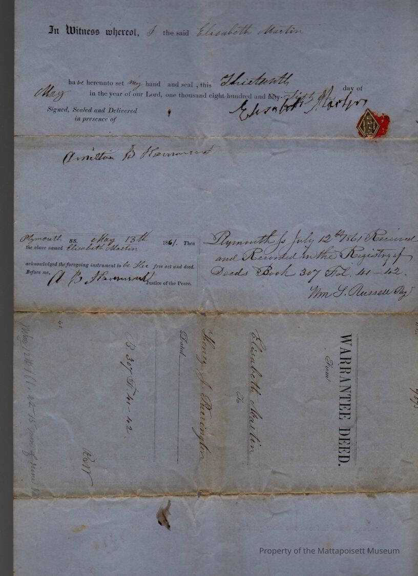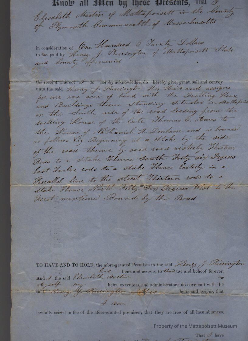 Elizabeth Martin to Henry J. Purrington, 1 acre with dwelling house and other buildings for $120.Collection