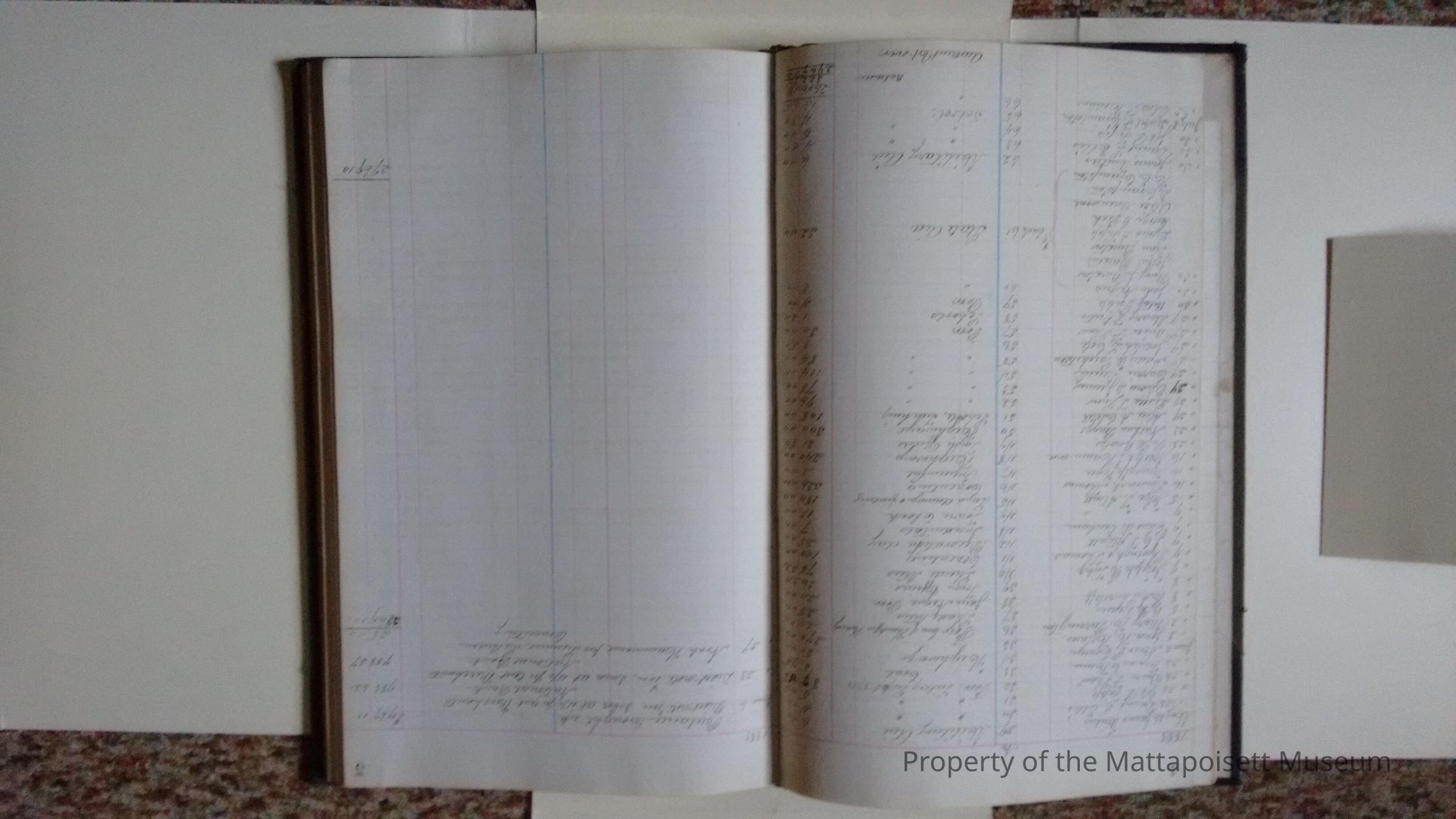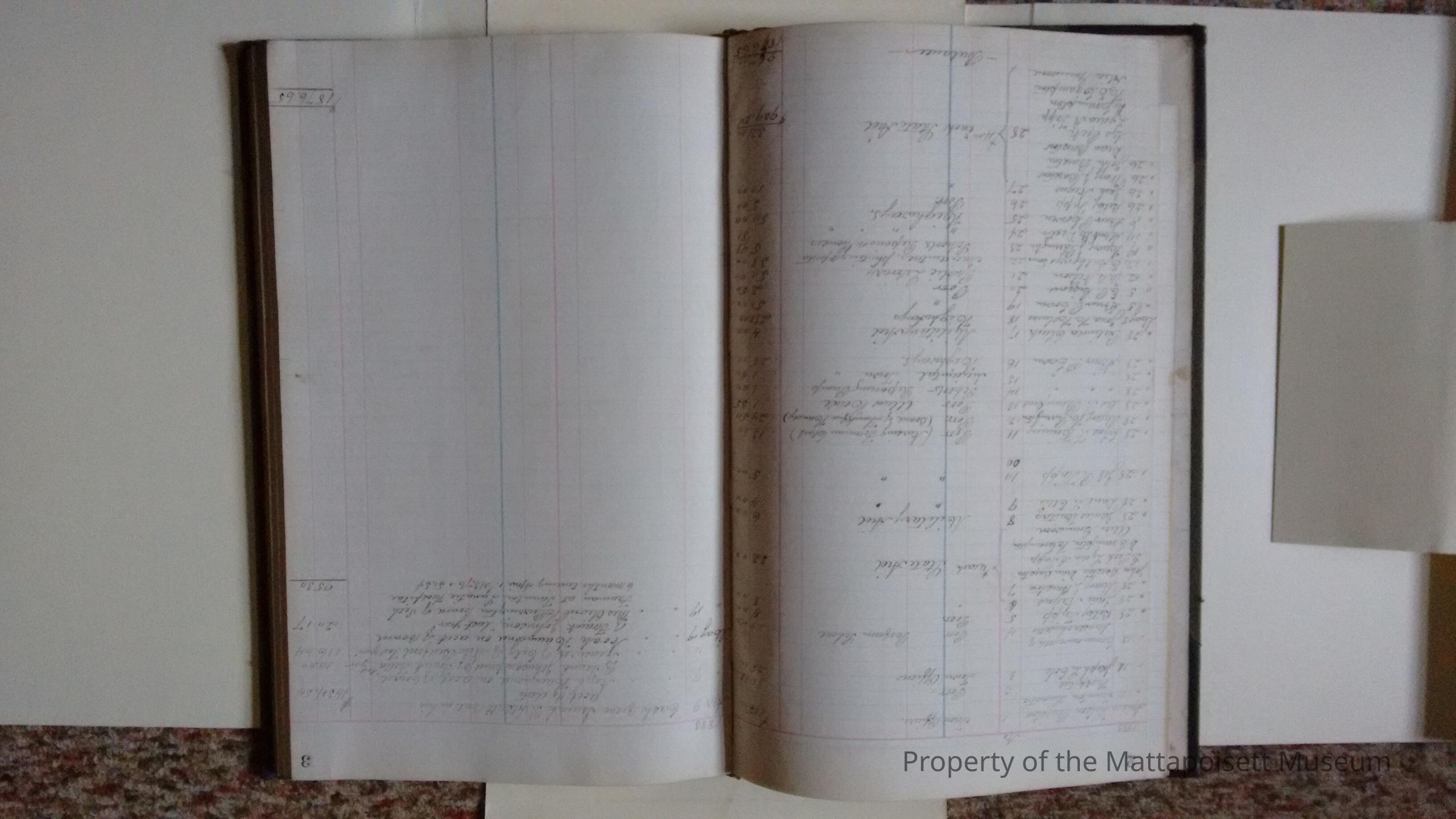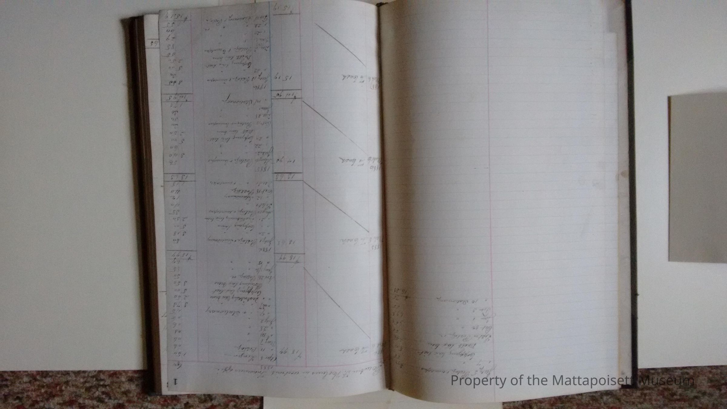 Town treasurer's book, Reuben F. Holmes, Treasurer. 1883-1888, includes entries on Military and State aid, various departments throughout the Town of Mattapoisett. Entry to Mrs. Olivia H. Purrington for the board of Seth Freeman at Taunton Lunatic Hospital for 6 months, ending April 1.Acquisition