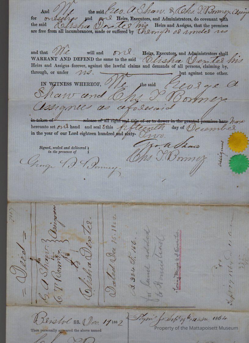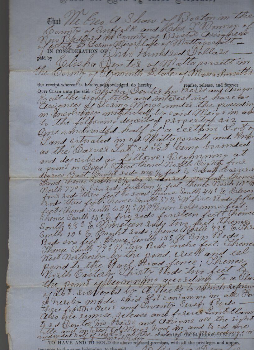 George A. Shaw of Boston & Charles T. Bonney to Elisha Dexter, “Carver Lot” for $200.Collection