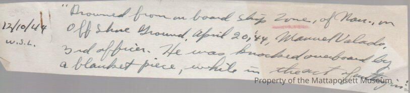 Whalemen's Shipping List article about drowning aboard Ship "Zone"