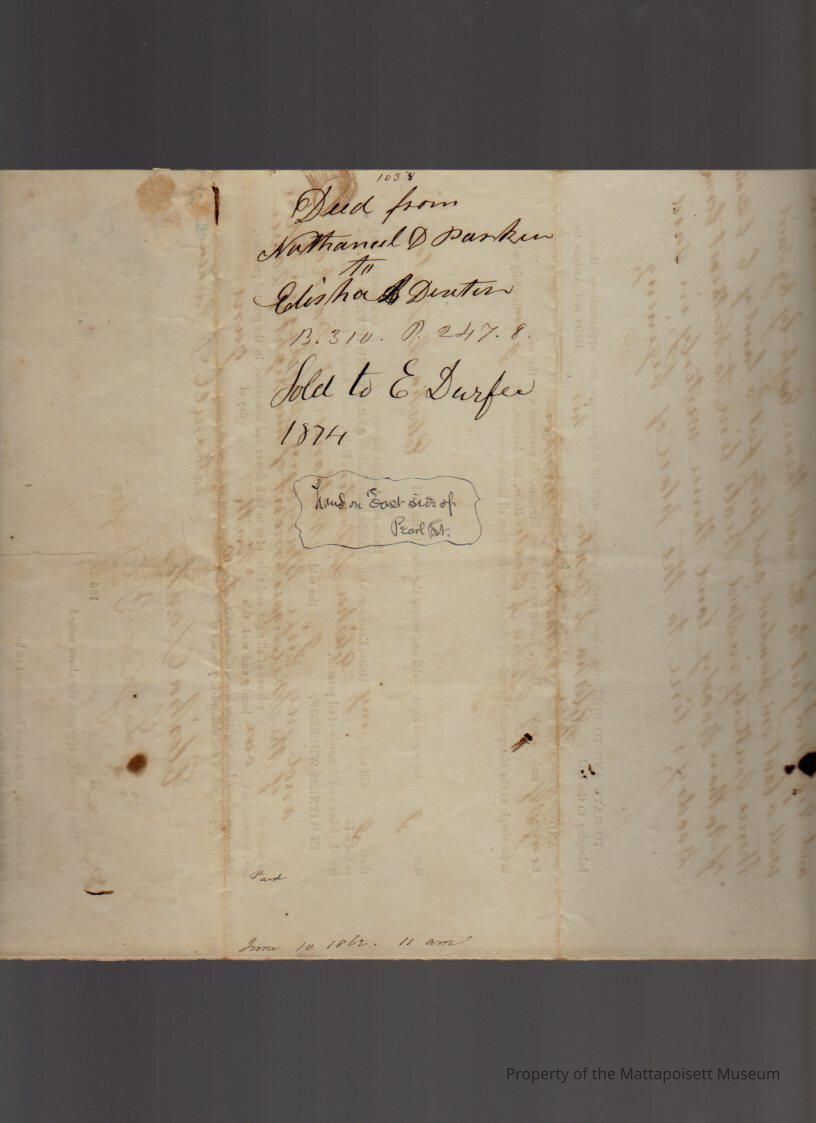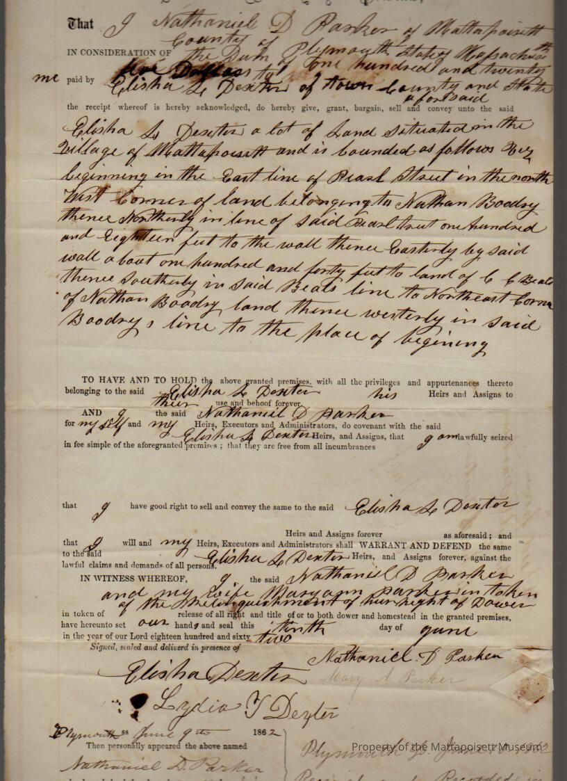 Nathaniel D. & Mary A. Parker to Elisha L. Dexter, land on Pearl Street for $125.Collection