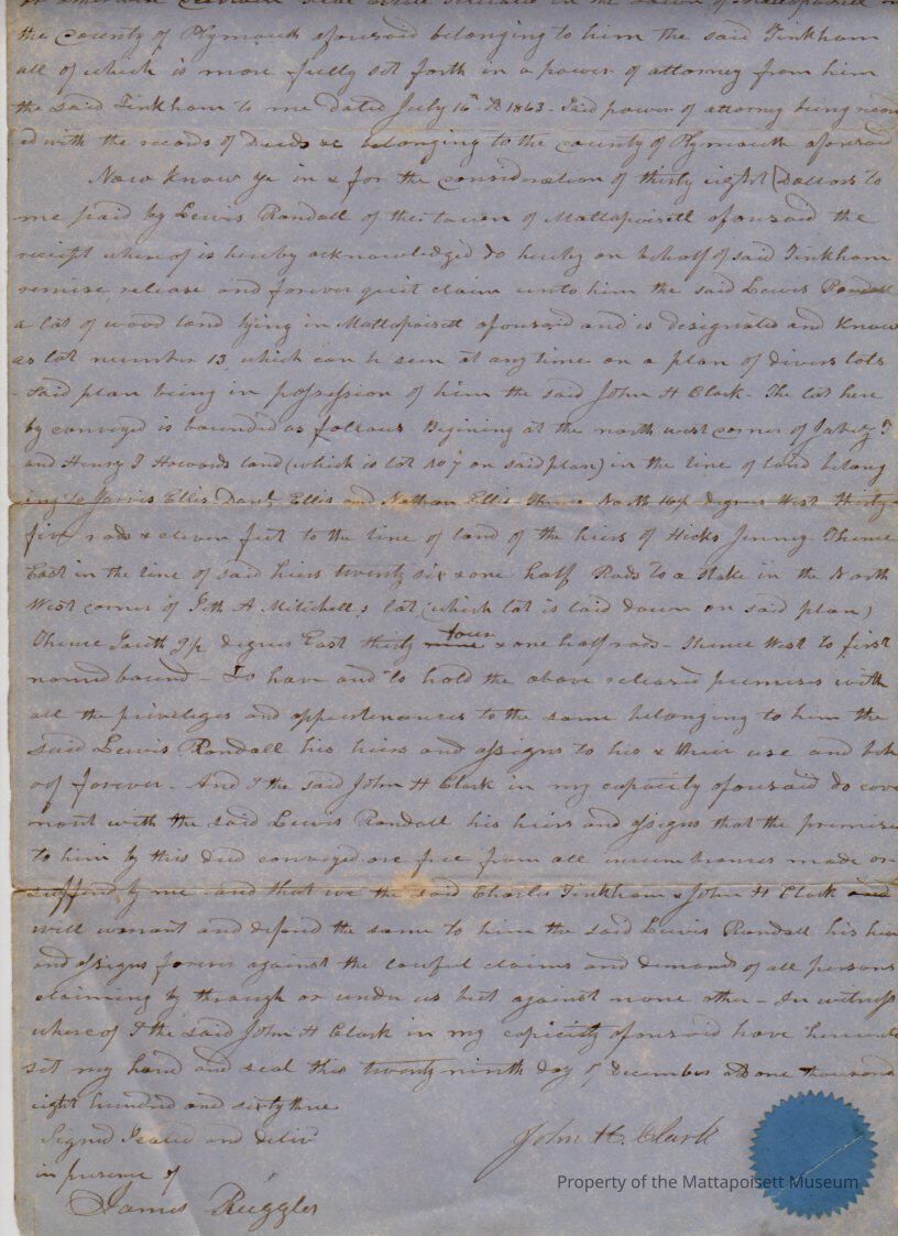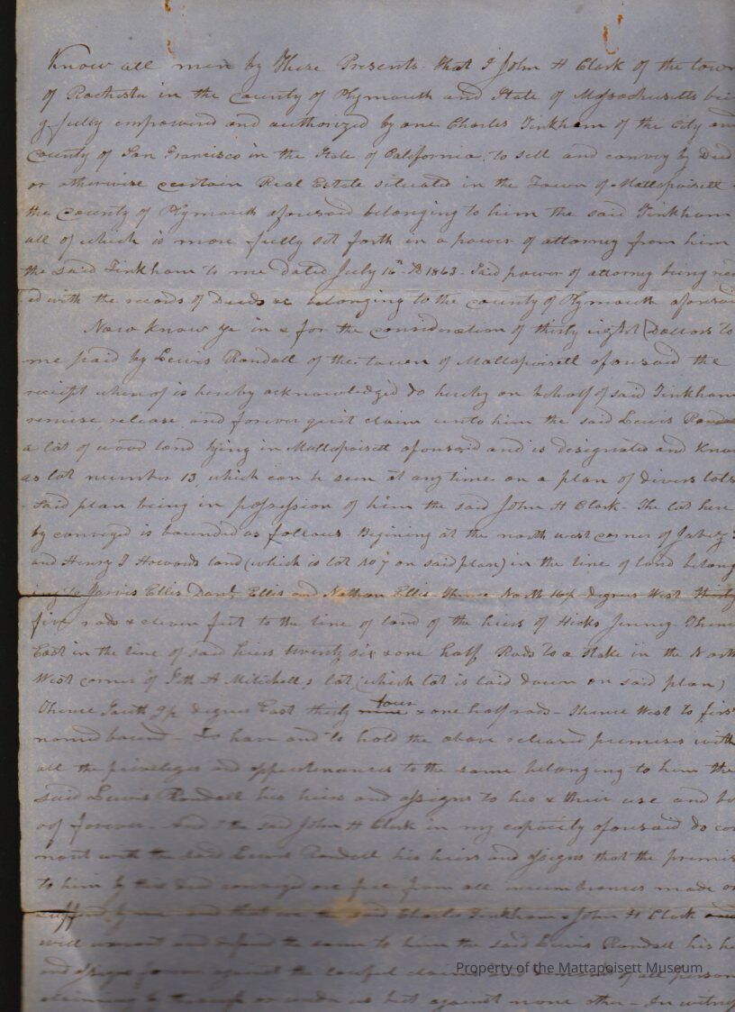 Charles Tinkham of San Francisco CA, by Power of Attorney John H. Clark of Rochester to Lewis Randall, $3.Collection