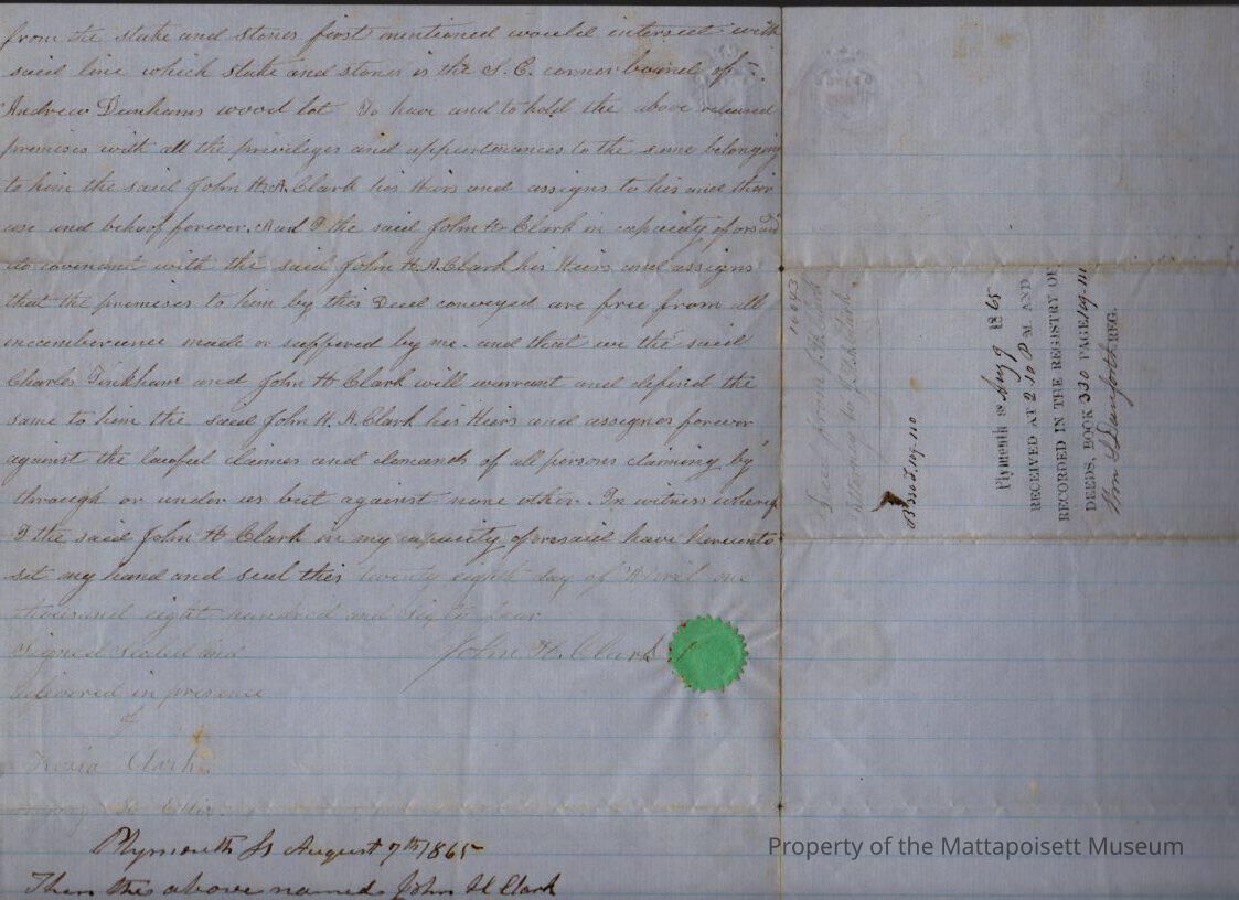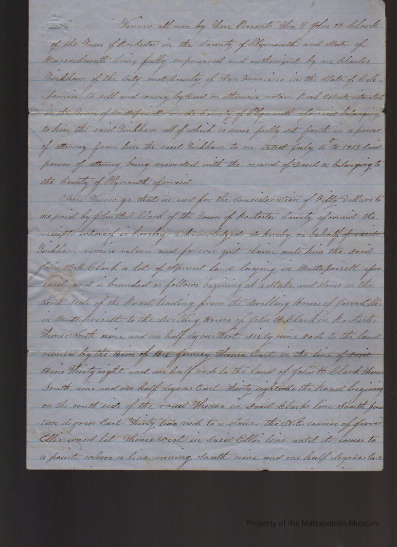 Charles Tinkham to John H. Clark, land for $50.Collection