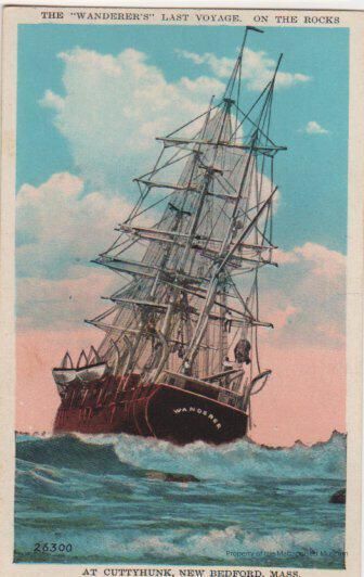 Postcard of The "Wanderer's" last voyage on the rocks at Cuttyhunk, New Bedford, Mass.Collection