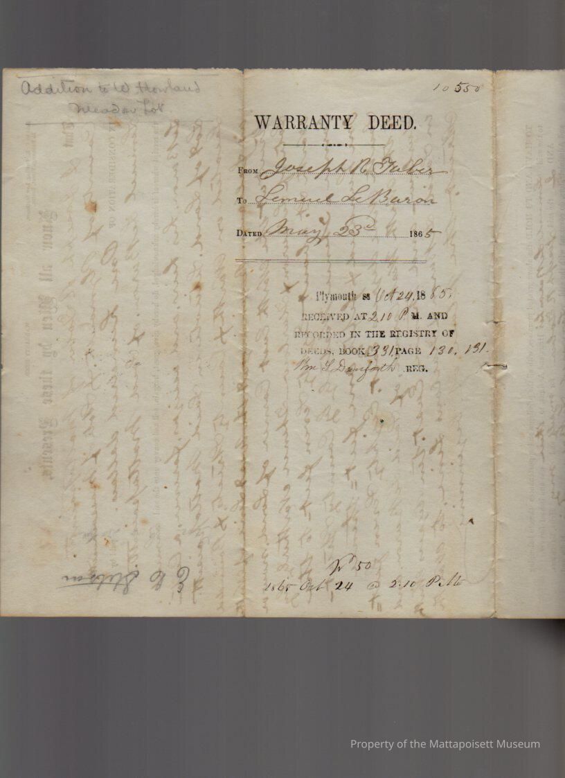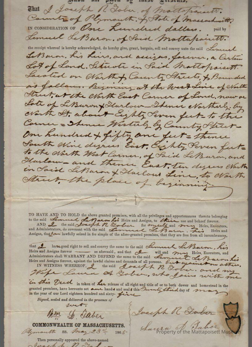 Joseph R. & Laura A. Taber to Lemuel LeBaron, land on North & County Streets for $100.Collection