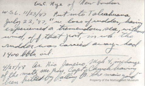 Whalemen's Shipping List, two articles on damages and deaths aboard Ship "William C. Nye"