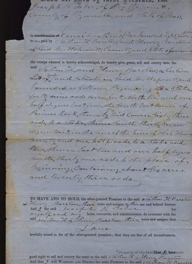Joseph R. & Laura A. Taber to Nathan H. Barstow & Henry Barstow, 6 acres, 23 rods woodland for $285.Collection