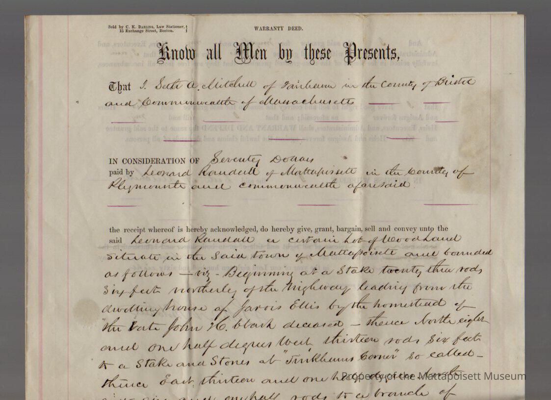 Seth A. Mitchell of Fairhaven to Leonard Randall, woodland for $170.Collection