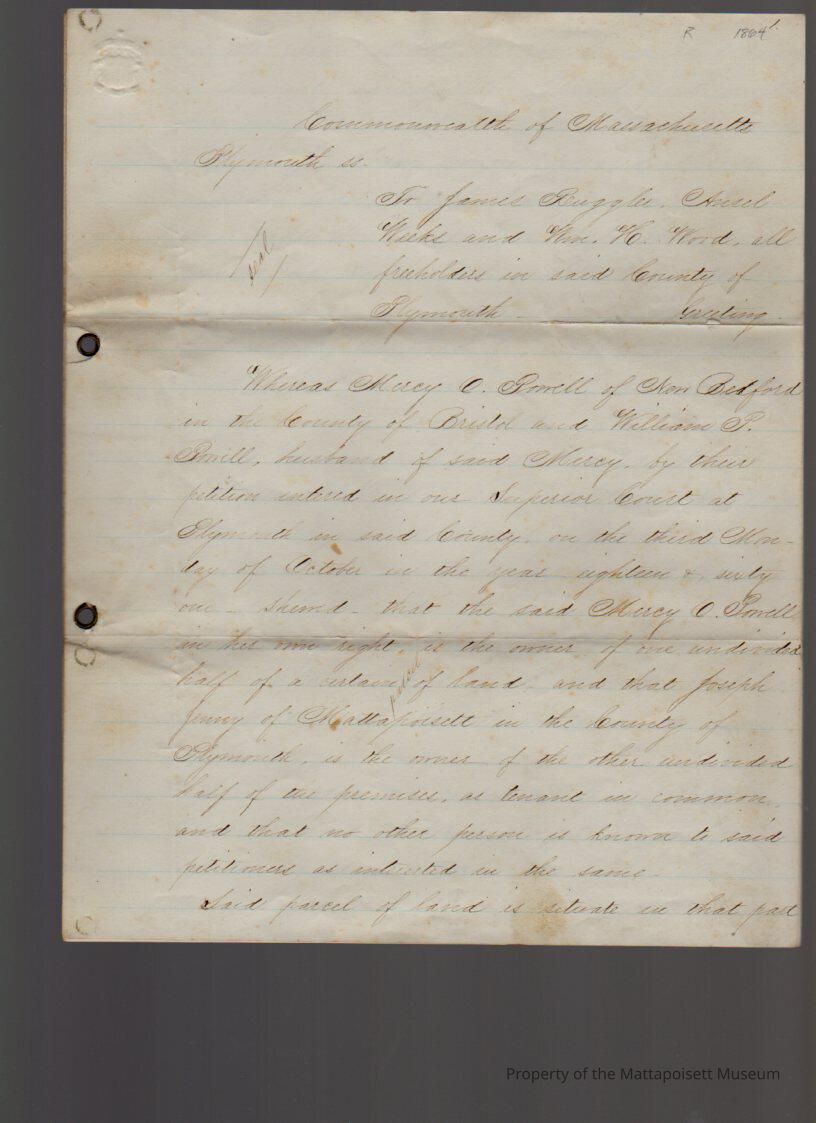 Certificate for the ownership of divided land, Mercy O. Powell and husband William P. Powell and Joseph Jenney, tenants in common.Collection
