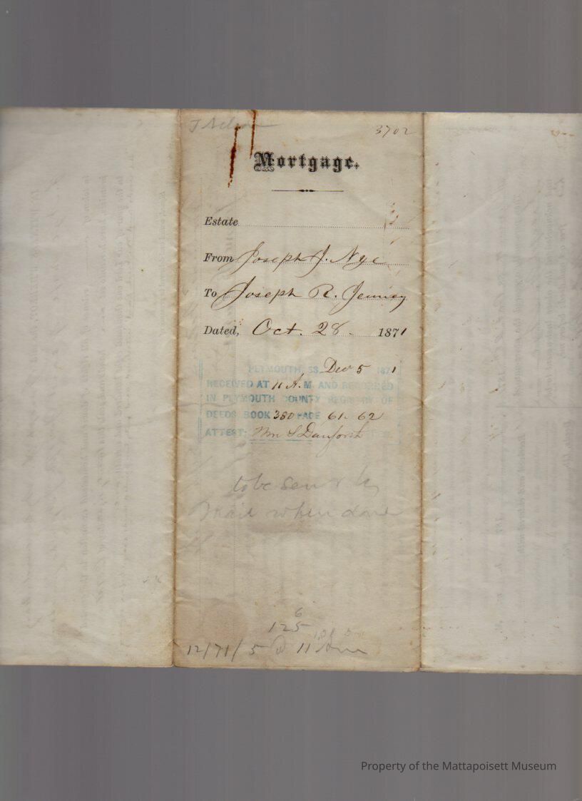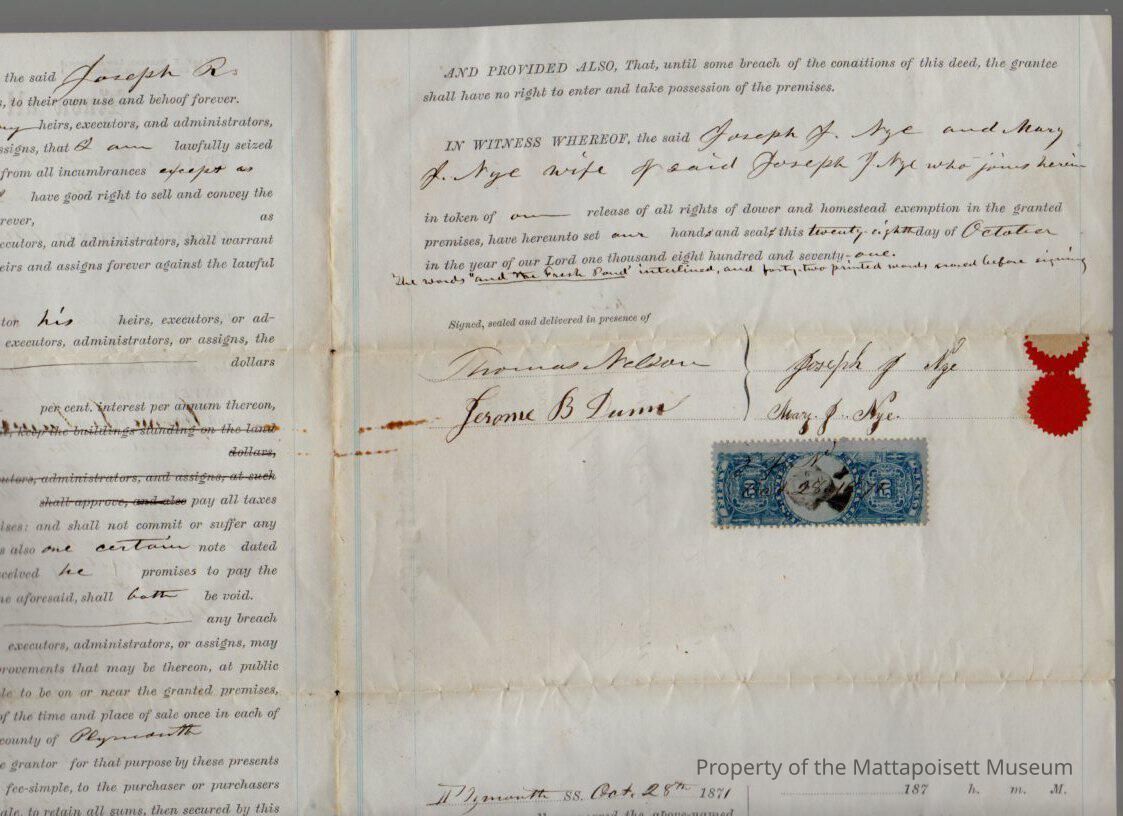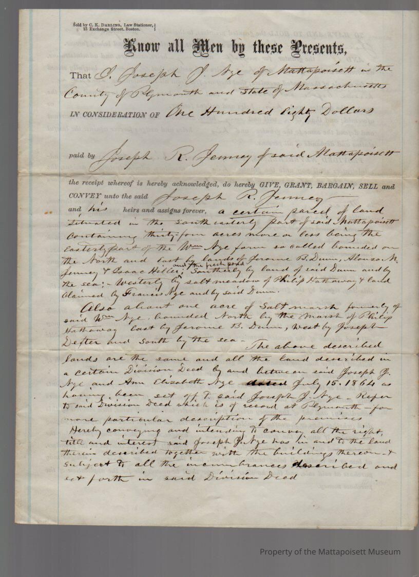 Joseph J. & Mary J. Nye to Joseph R. Jenney, 38 acres in southeastern Mattapoisett for $180.Collection