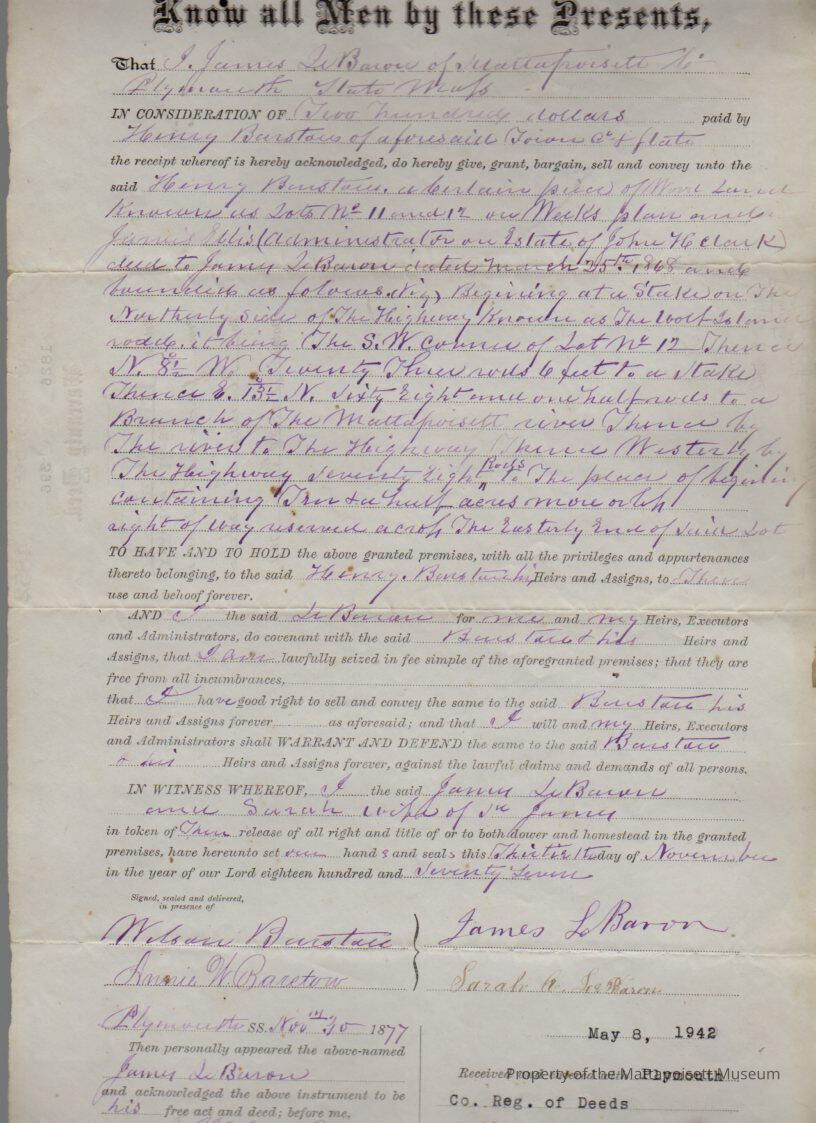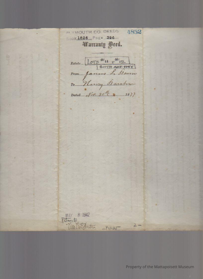 James & Sarah A. LeBaron to Henry Barstow, 3 ½ acres of wood lots 11& 12 for $200.Collection