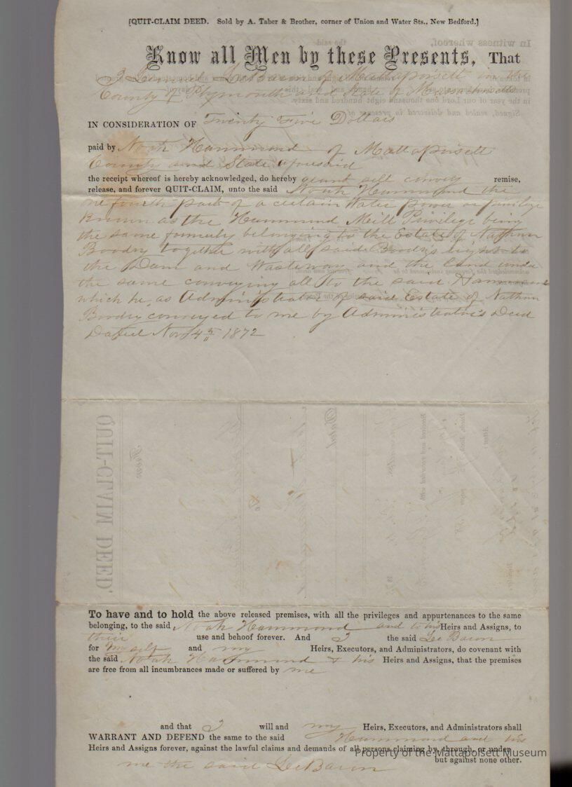 Lemuel & Lydia LeBaron to Noah Hammond, $25 for water privilege.Collection