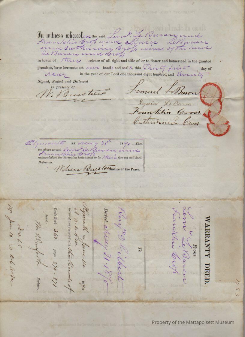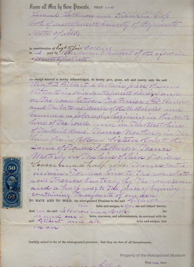 Lemuel & Lydia LeBaron & Franklin & Catherine L. Cross to Benjamin D. Gilbert, ¾ acres for $85.Collection