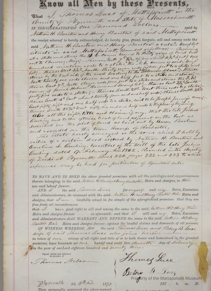 Thomas & Betsy D. Luce to Nathan H. Barstow to Henry Barstow, woodlot for $1,000Collection