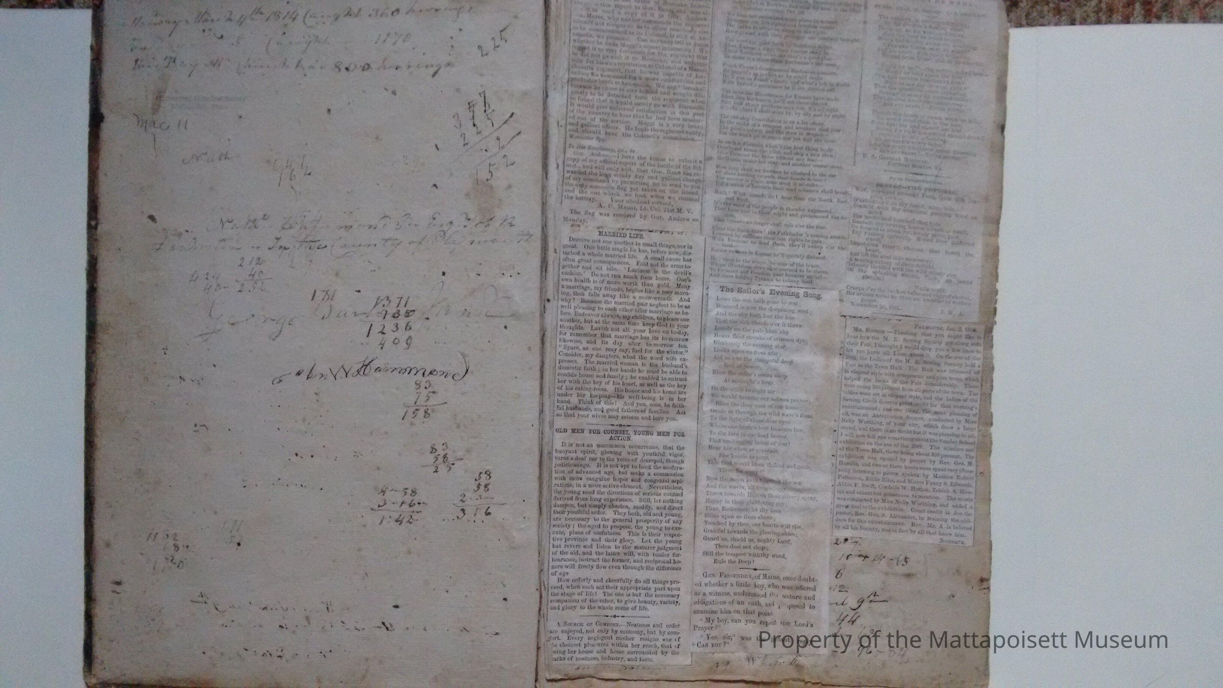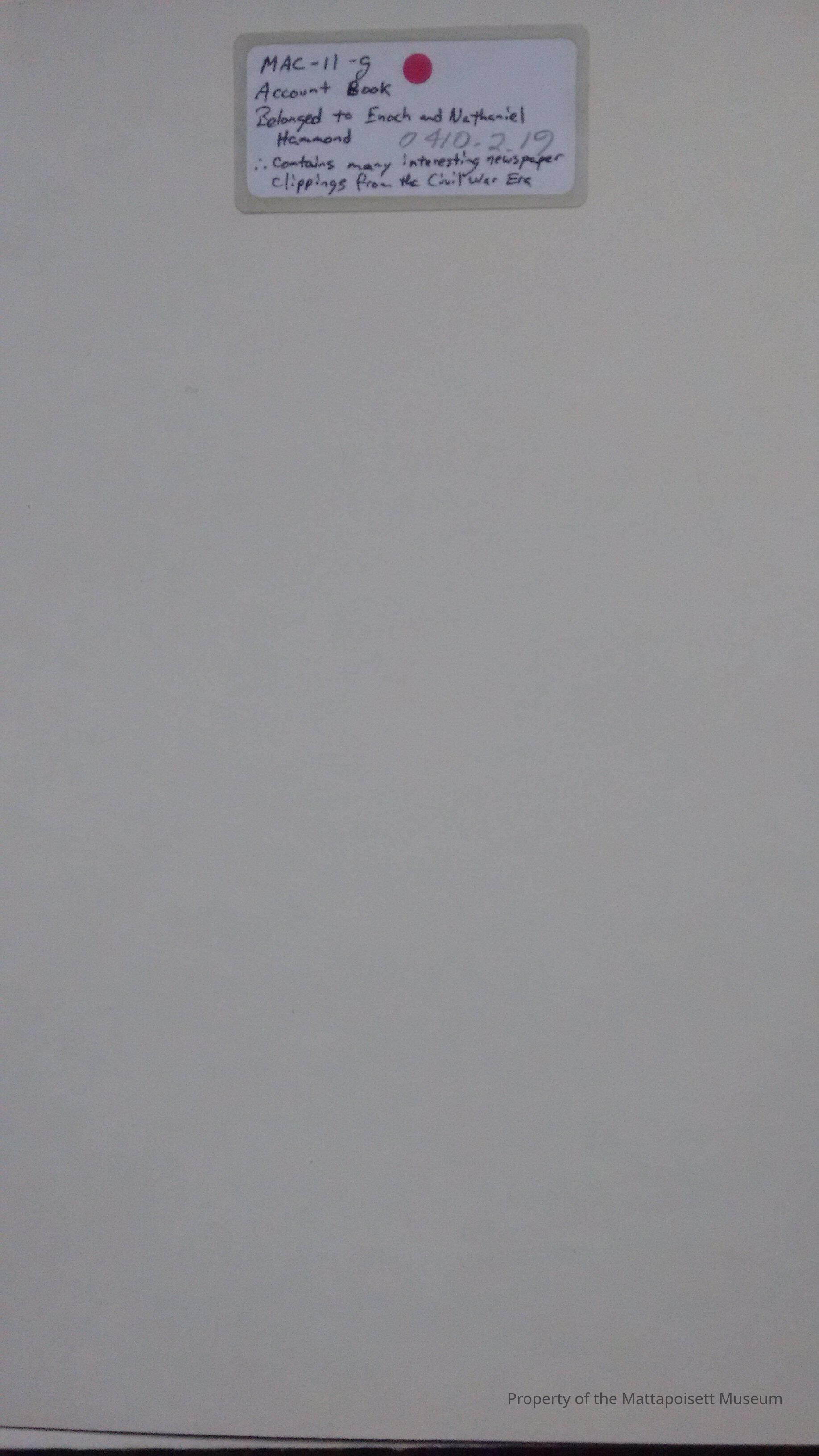 Account book belonging to Enoch and Nathaniel Hammond, contains newspaper clippings from Civil War era as a scrapbookAcquisition