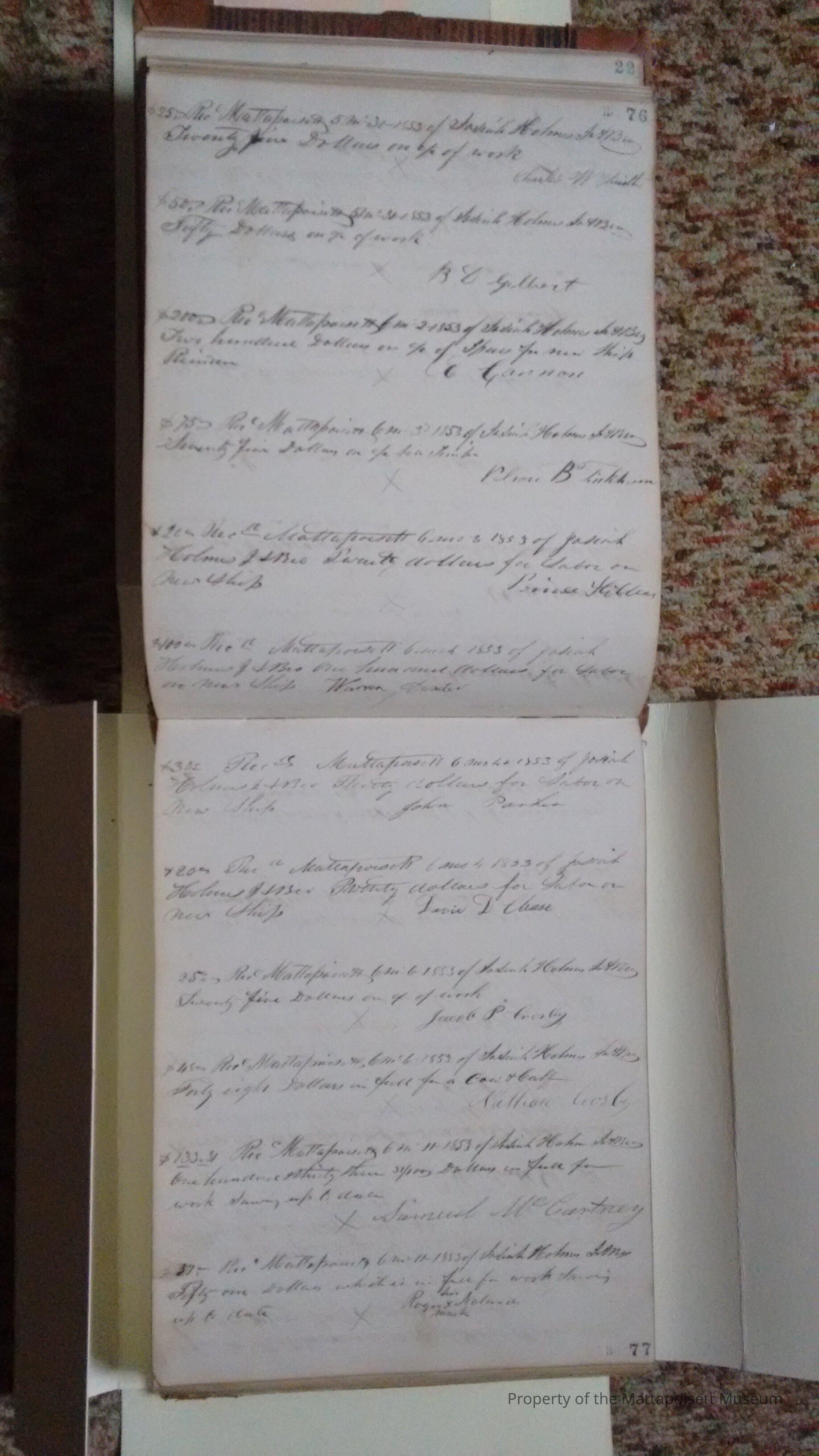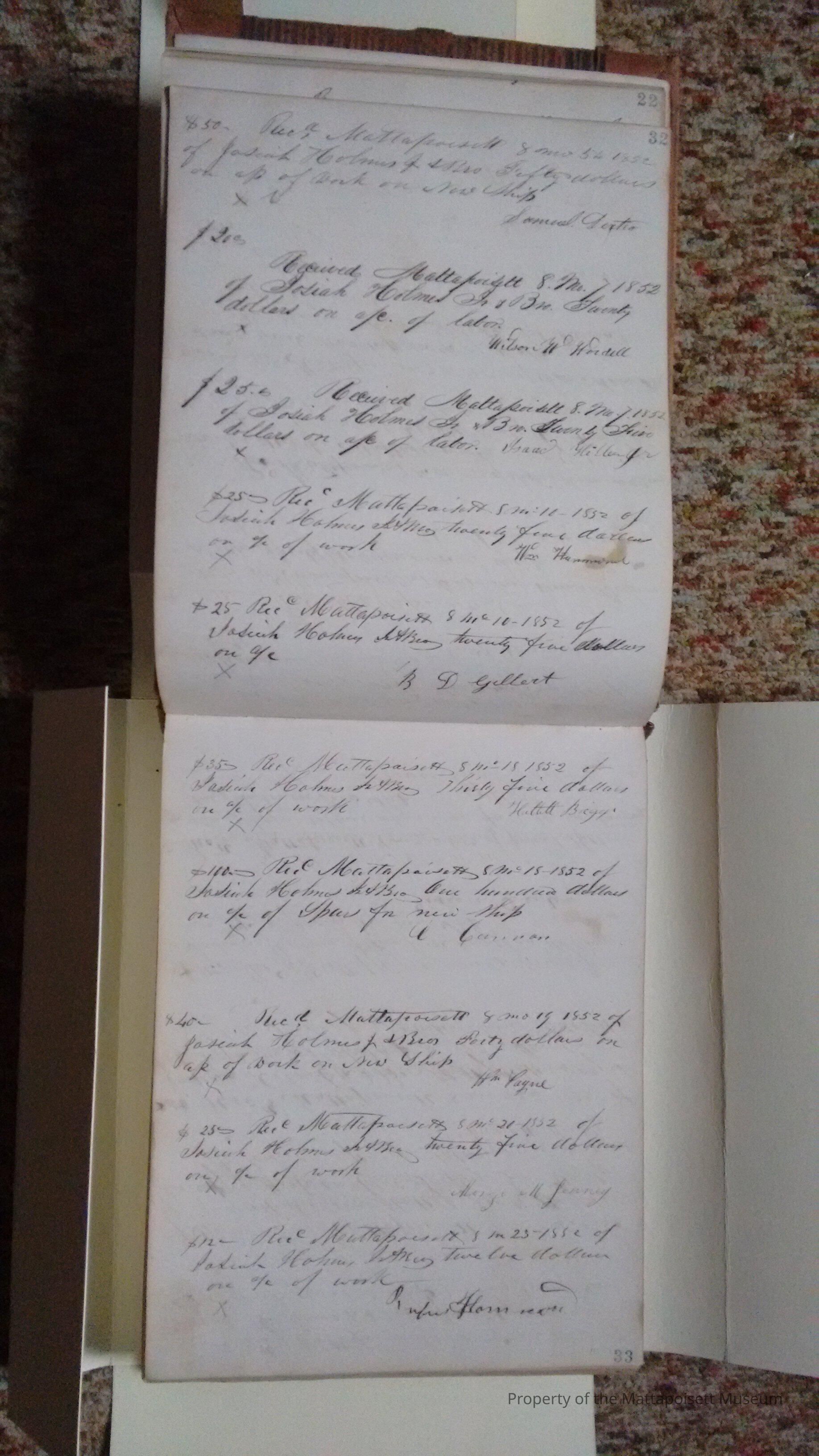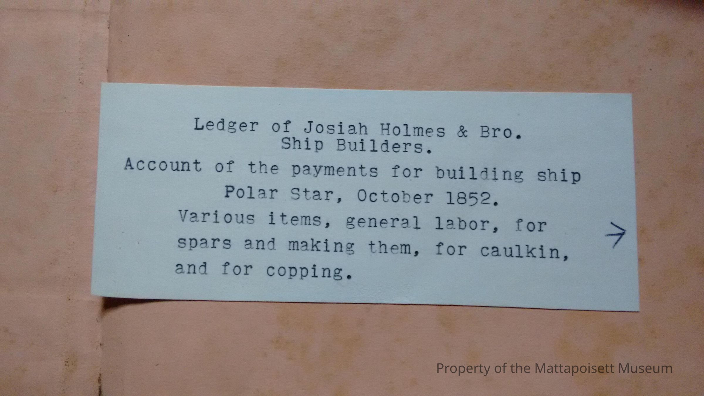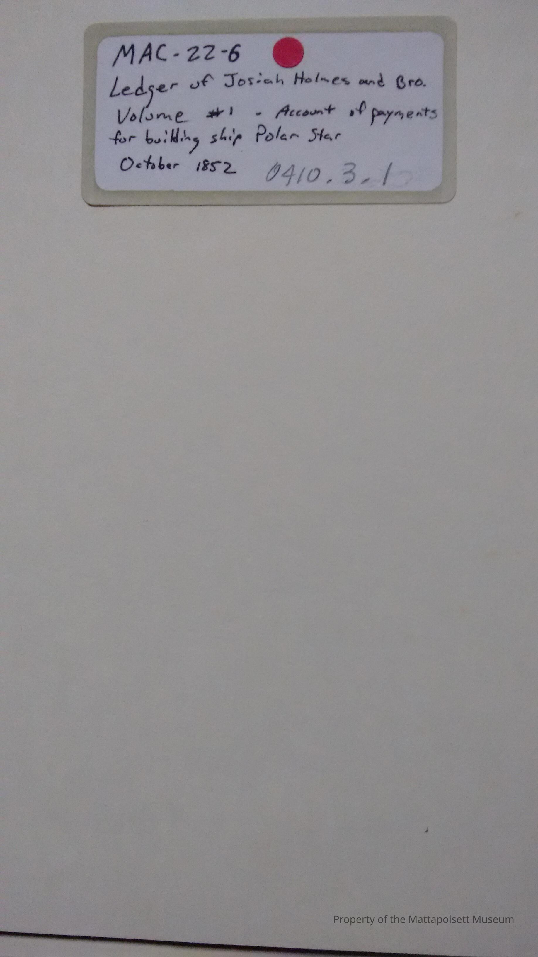 Ledger of Josiah Holmes and Brothers. Volume #1, account of payments for building Ship Polar.Acquisition