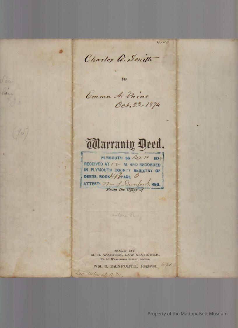 Russell E. Snow to Noah Hammond, ¾ acres land and dwelling house for $150.Collection