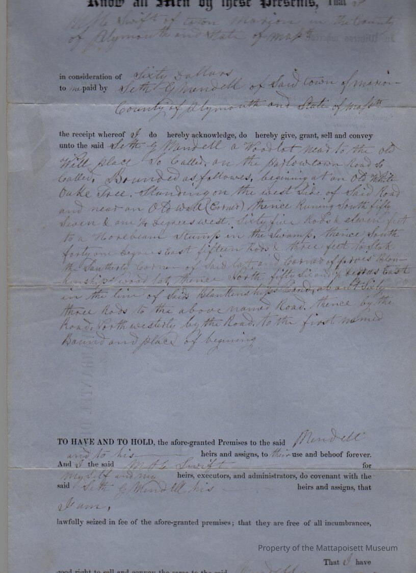 M. H. & Charlotte Swift of Marion to Seth Mendell of Marion, wood lot on Barlowtown Road for $60.Collection