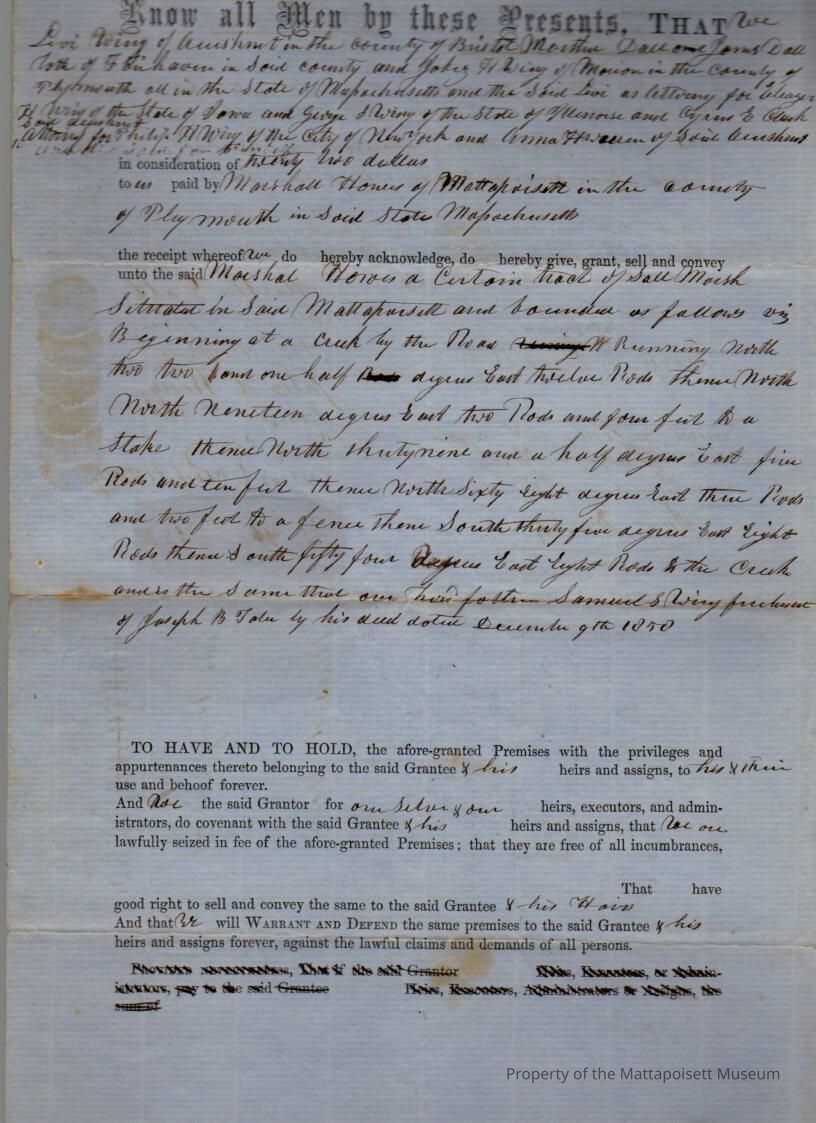 Levi Wing of Acushnet, et al. to Marshall Howes, salt marsh for $32.Collection