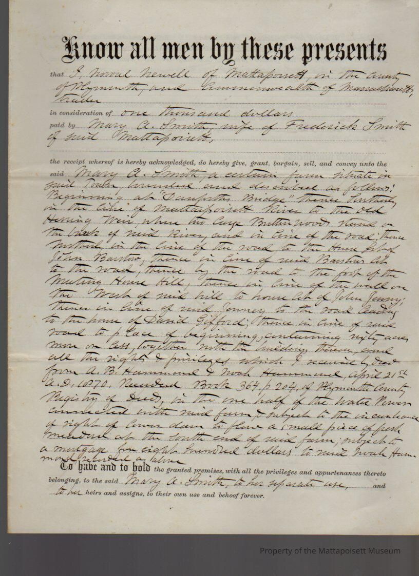 Norval & Anna L. Newell to Mary A. Smith, farm and ½ waterpower for $1,000.Collection