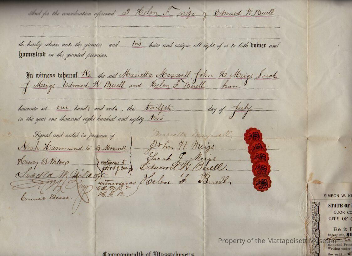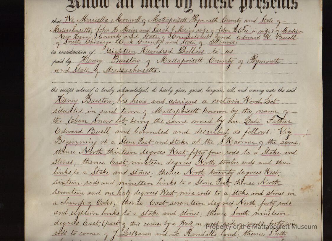 Marietta Maxwell, et al. (heirs of Edward Buell: John H. Meigs, Sarah J. Meigs, Edward W. Buell & Helen F. Buell) to Henry Barstow 29 acres, 43 rods woodland called “Ebenezer Snow Lot” for $1,800.Collection
