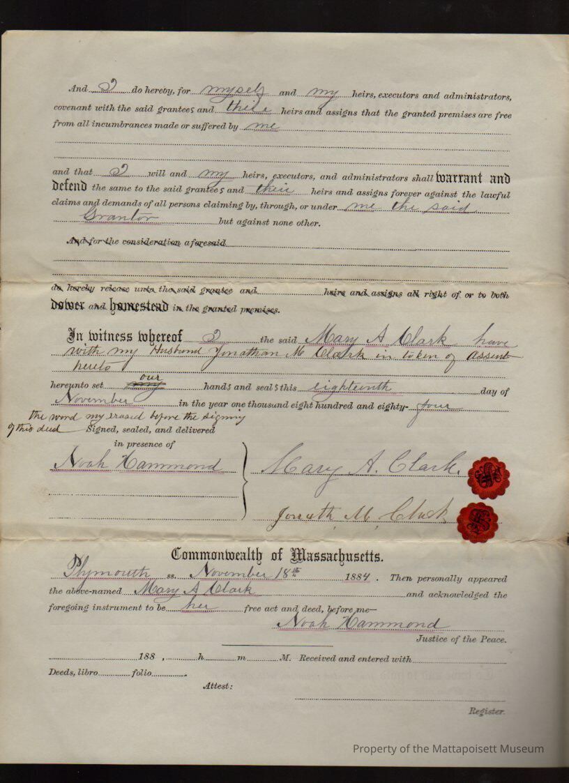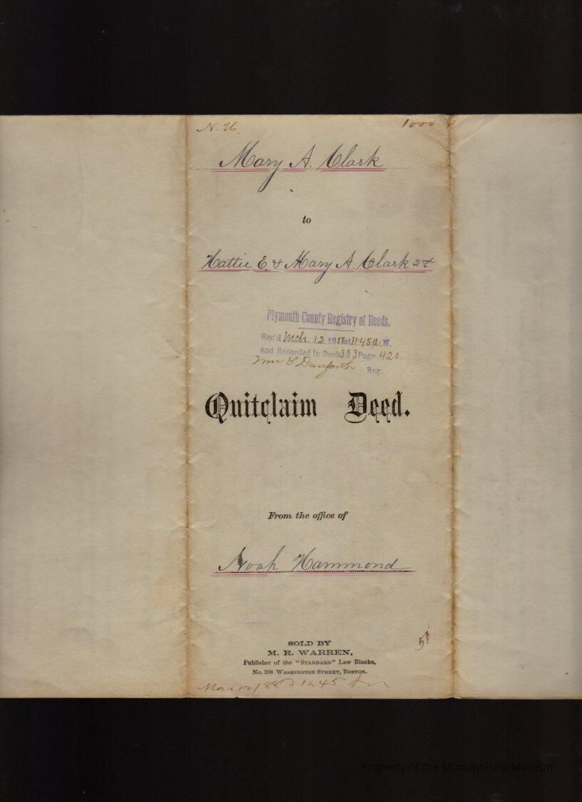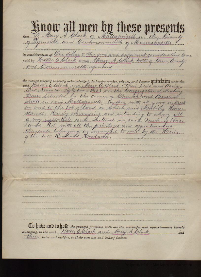 Mary A. & Jonathan M. Clark to Hattie E. Clark & Mary A. Clark, Pew #52 in Congregational Meeting House for $1 and other good and sufficient considerations.Collection