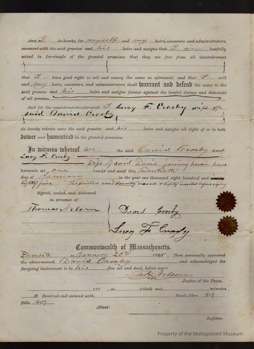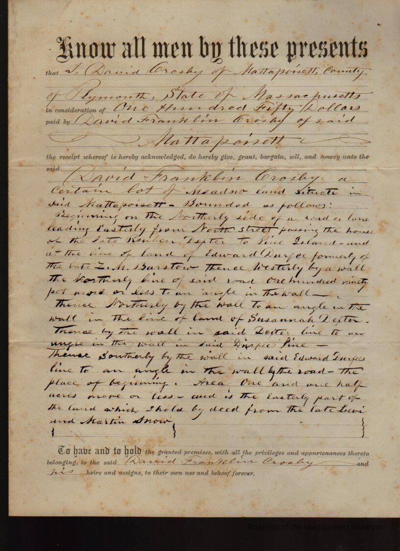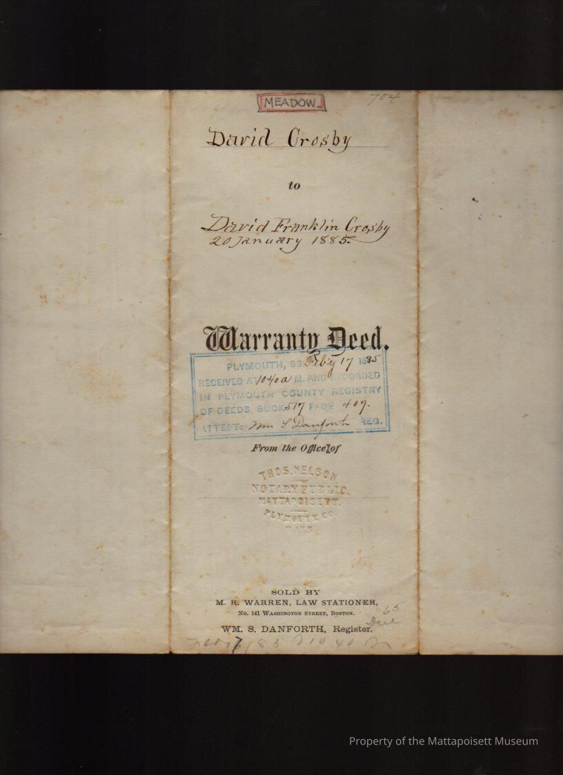 David & Lucy F. Crosby to David Franklin Crosby, 1 ½ acre meadow for $150.Collection