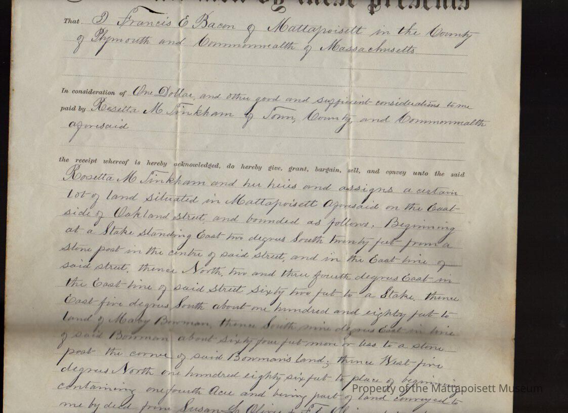 Francis E. & Louisa C. Bacon to Rosetta M. Tinkham.Collection