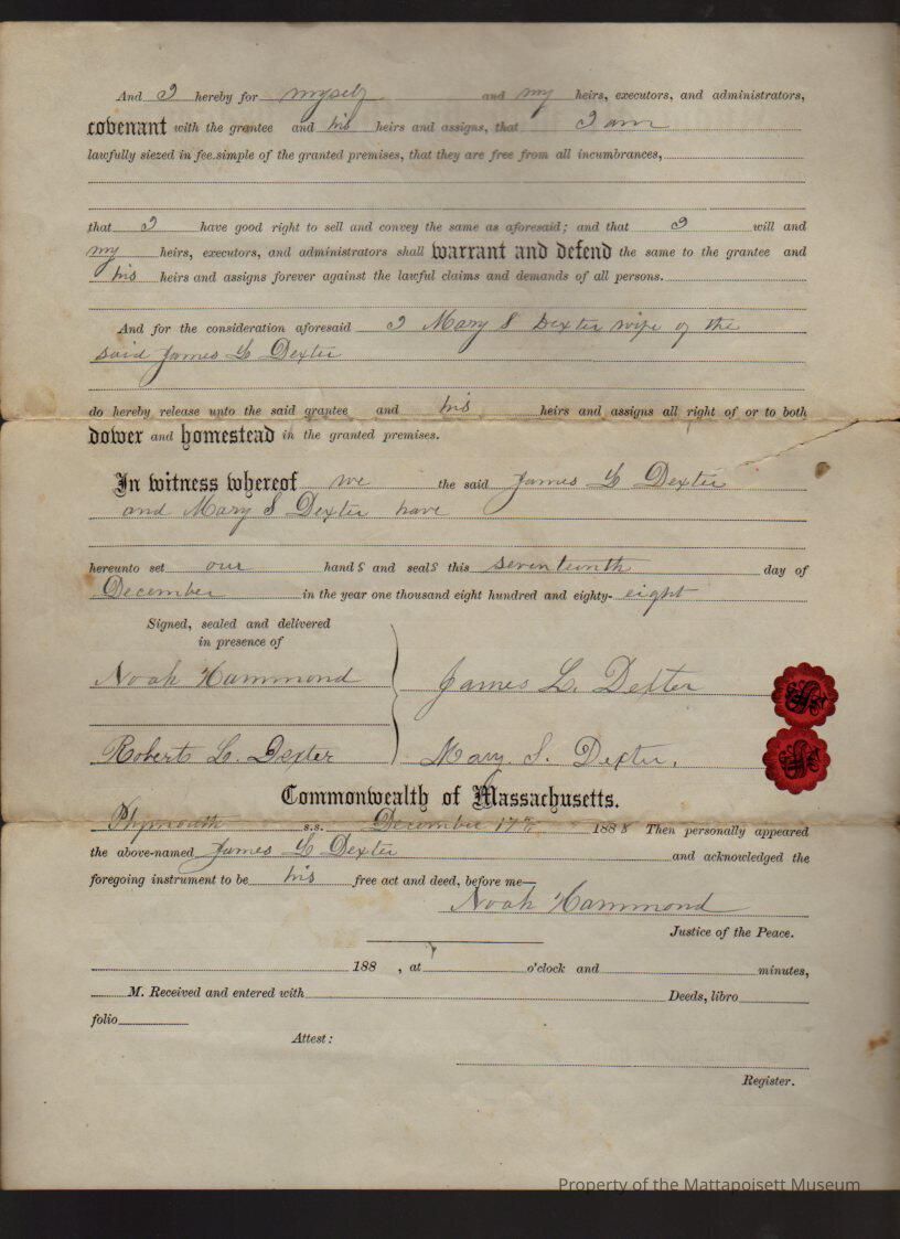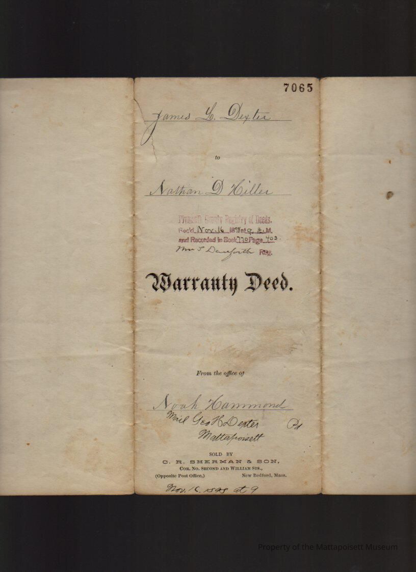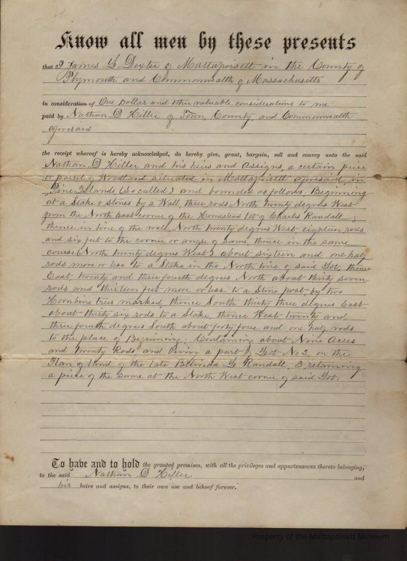 James L. & Mary S. Dexter to Nathan D. Hiller, 9 acres, 20 rods of woodland in Pine Island for $1 and other valuable considerations. Survey.Collection