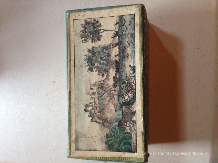 CARDBOARD BOX, BLUE/GRAY, WITH CASTLE SCENE.Collection