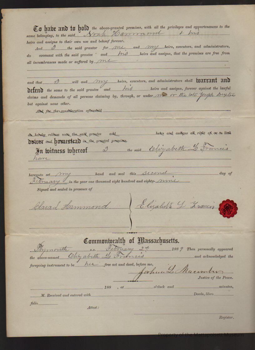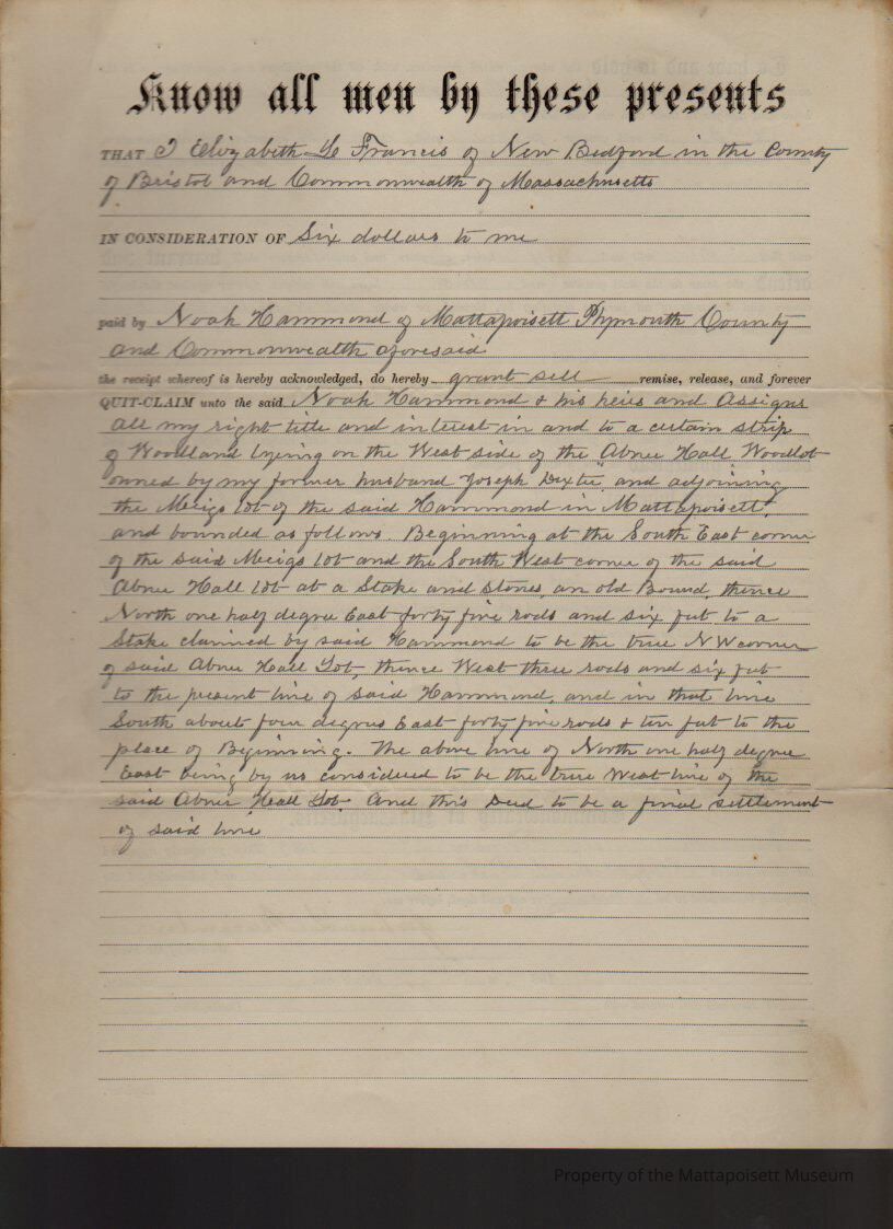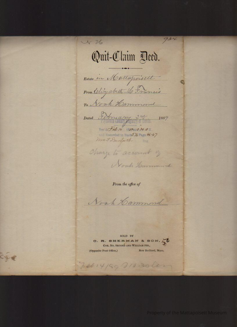 Elizabeth L. Francis of New Bedford to Noah Hammond.Collection