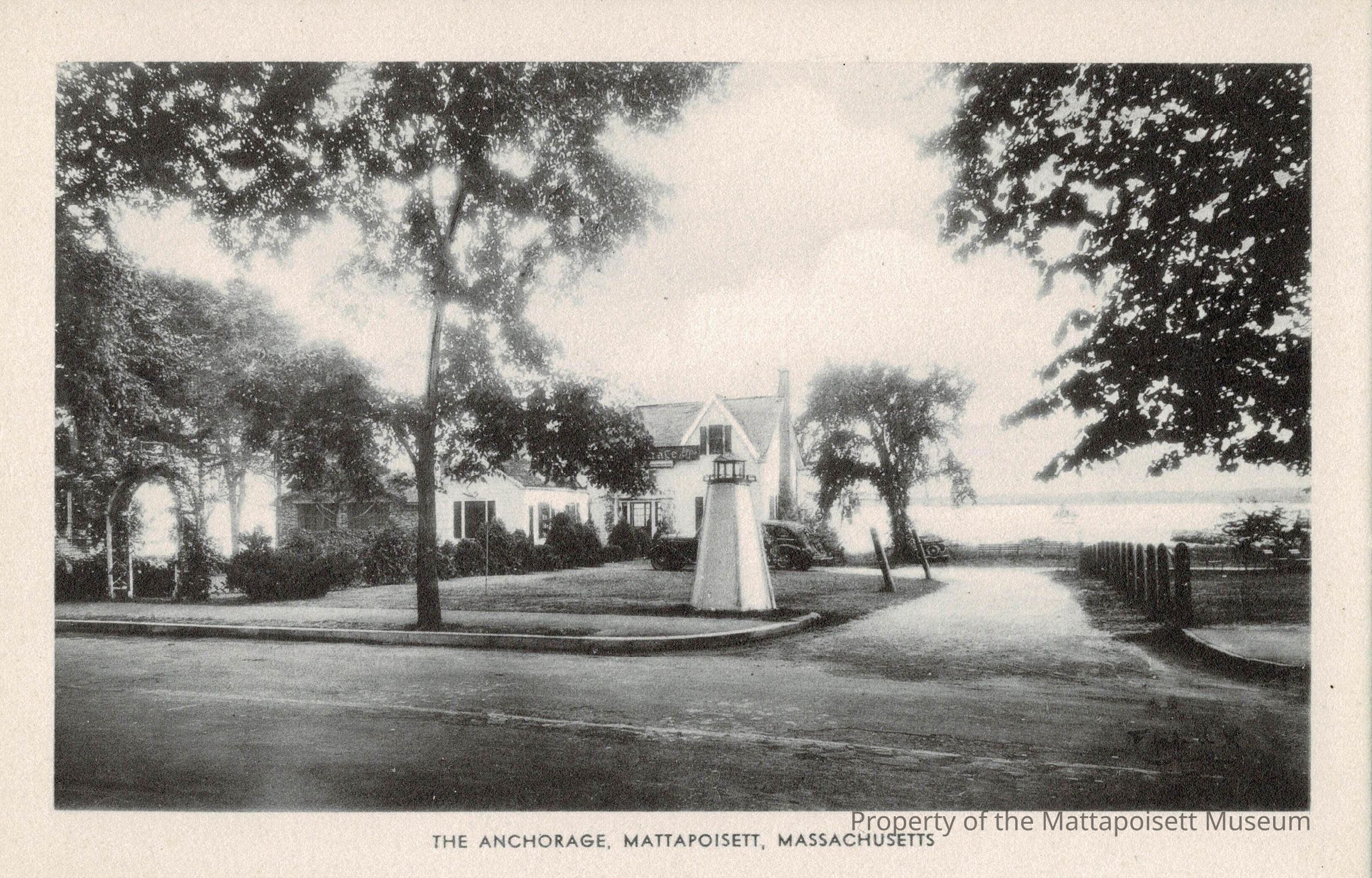 Black and white postcard showing The Anchorage Mattapoisett, Massachusetts.Collection