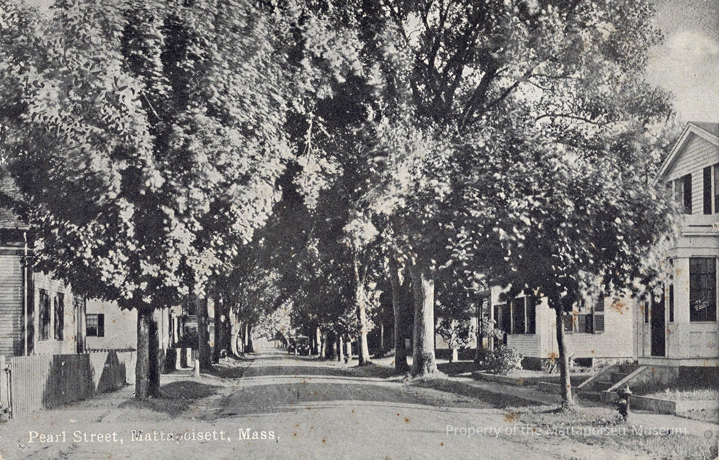 Black and white postcard showing Pearl Street, Mattapoisett, Mass. Pre-addressed name and address of Alice C. Ordway, North Street, Mattapoisett, Massachusetts.Collection