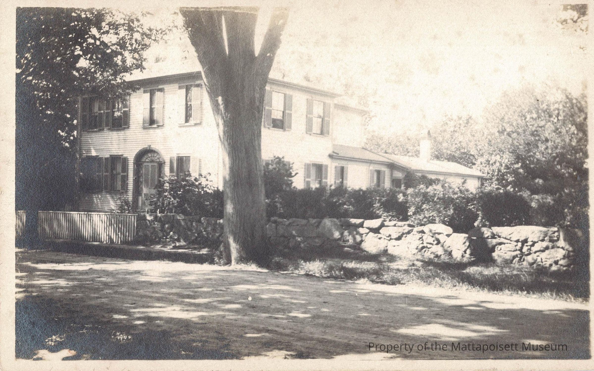 Black and white postcard showing a house built by Ansel Weeks. Writing on reverse side states "Built by Ansel Weeks, inherited by daughter, Mrs. John Washburn, then 2nd Mrs. John Washburn, now Geo. Heath".Collection