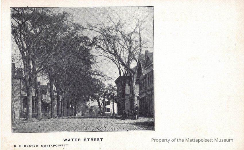 Black and white postcard showing Water Street, G.H. Dexter, Mattapoisett, Mass.Collection