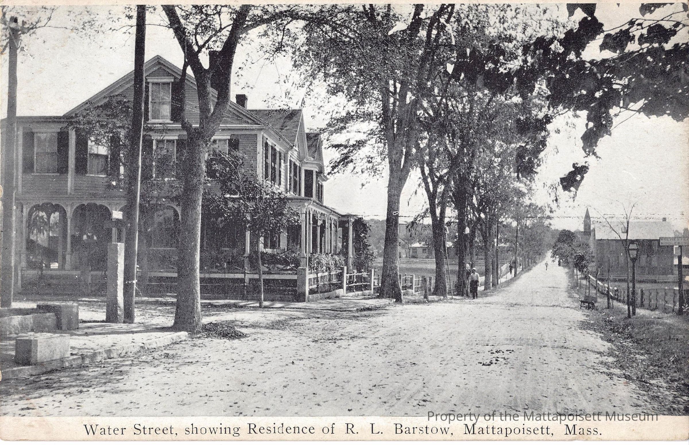 Black and white postcard showing Water Street, Residence of R.L. Barstow, Mattapoisett, Mass.Collection