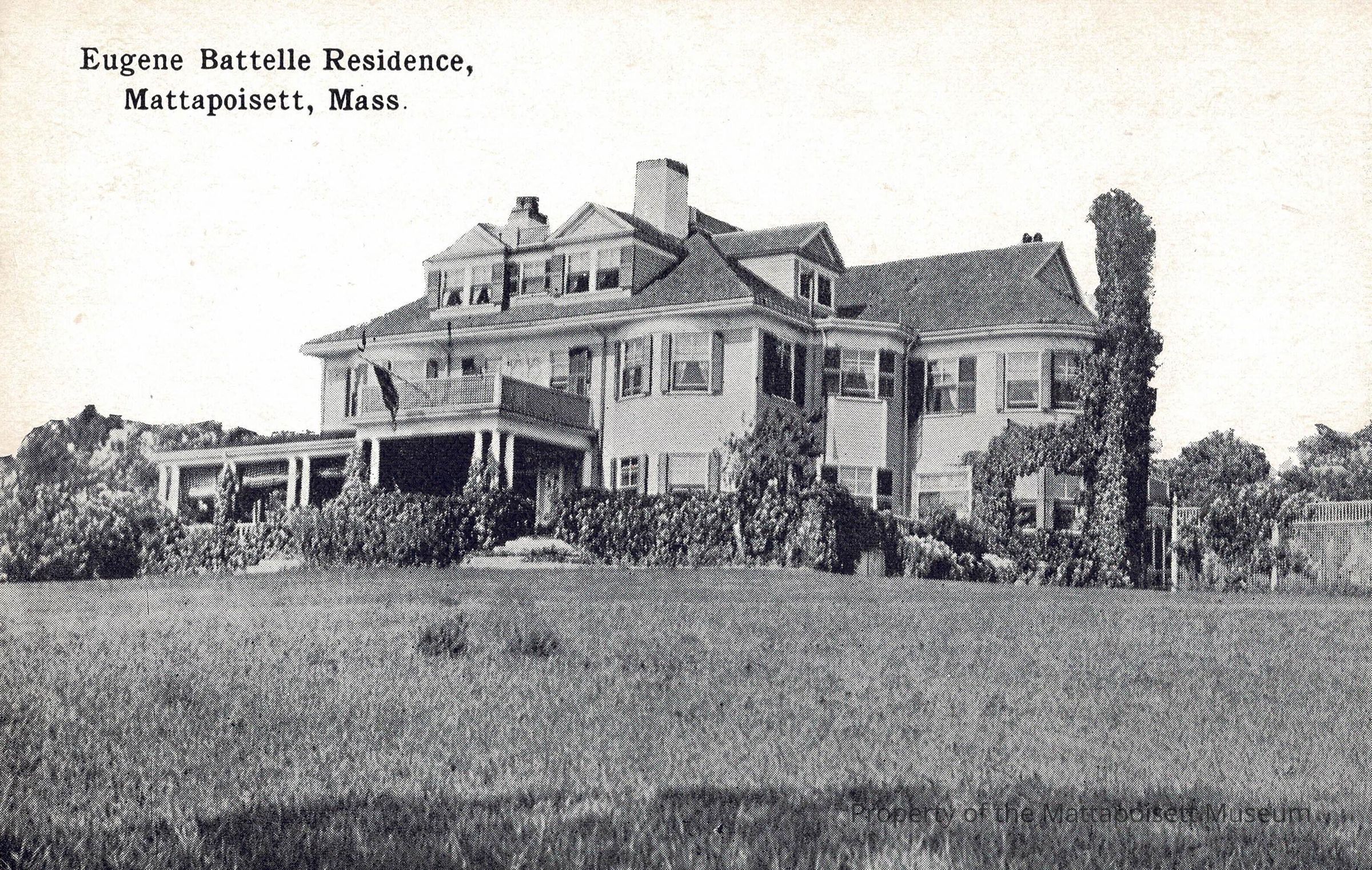 Black and white postcard showing Eugene Battelle Residence, Mattapoisett, Mass.Collection