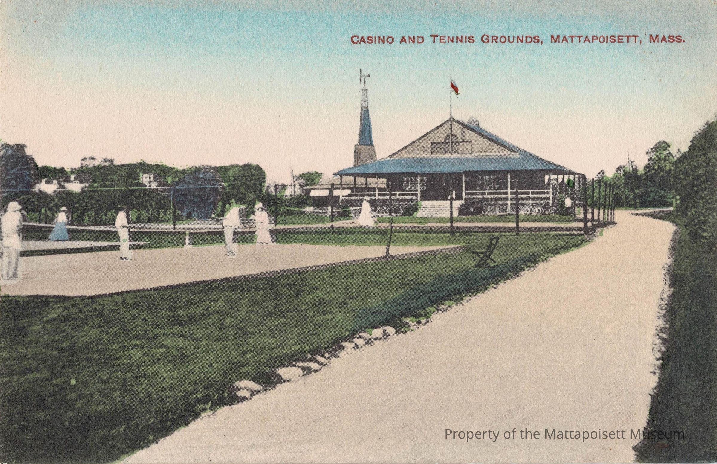 Hand-colored postcard showing Casino and Tennis Grounds, Mattapoisett, Mass.Collection